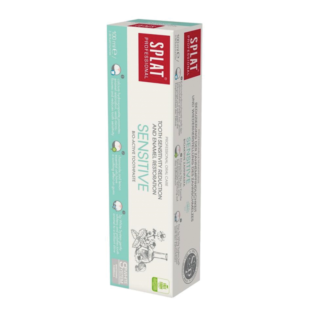 SPLAT Sensitive zobna pasta za beljenje in obnovo zob brez fluorida 100 ml Celoten opis
