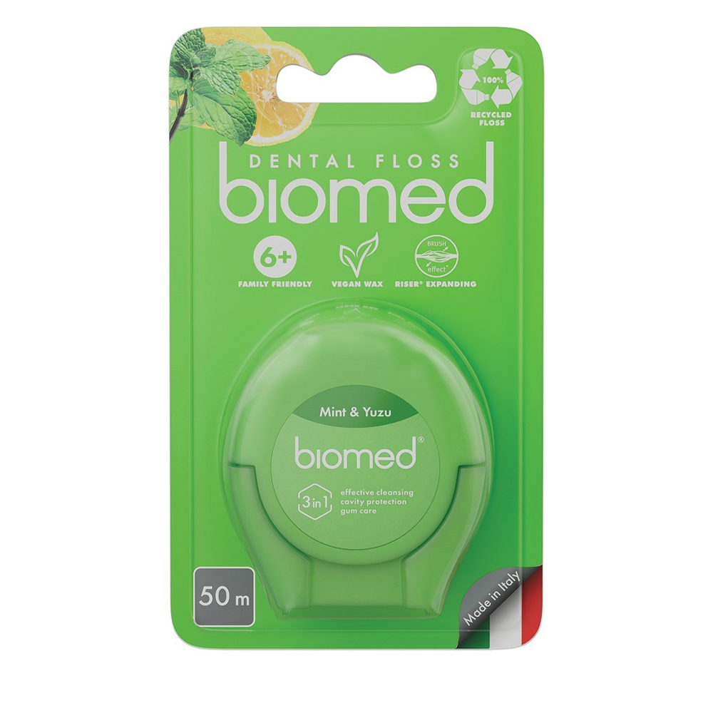 Zobna nitka Biomed z voskom in meto, nežna, 50 m Celoten opis