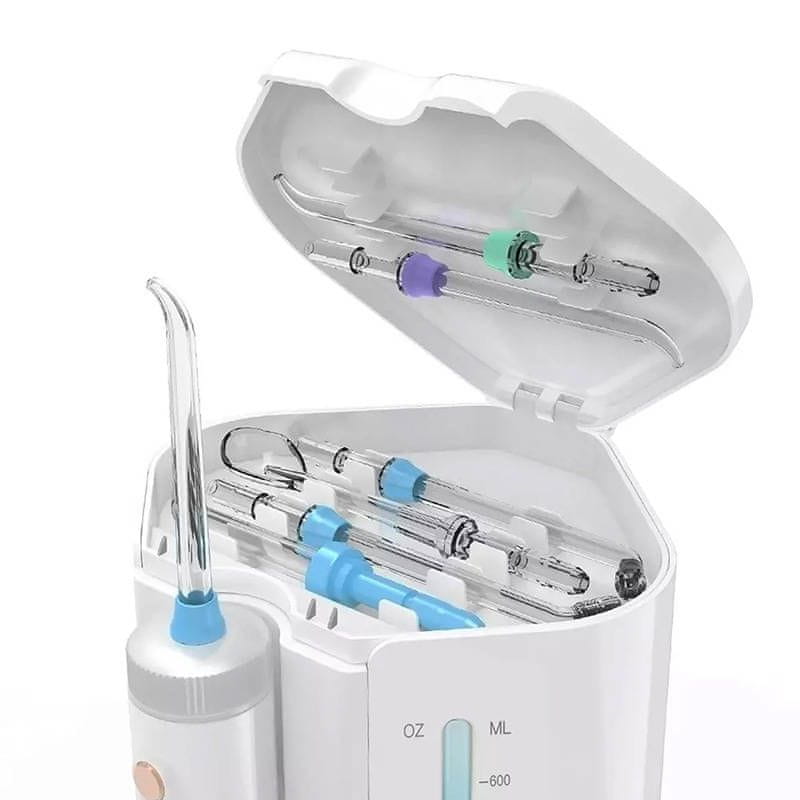 Vključeno Stacionarni irigator Standardna konica x3 Konica za odstranjevanje zobnih oblog Ortodontski vrh Parodontalna konica Konica za čiščenje jezika Proizvajalec Nicefeel Model FC2520 Bela barva Prostornina rezervoarja za vodo 600 ml Vhodna napetost 100–240V 50/60Hz 18W moči Visok tlak: 80–120 psi; Nizka: 20–50psi; Pretok vode 310ml/min Raven hrupa Do 70 dB Vodotesna Glavna enota: IPX4; Ročaj: IPX7; Samodejni izklop Po 3 minutah