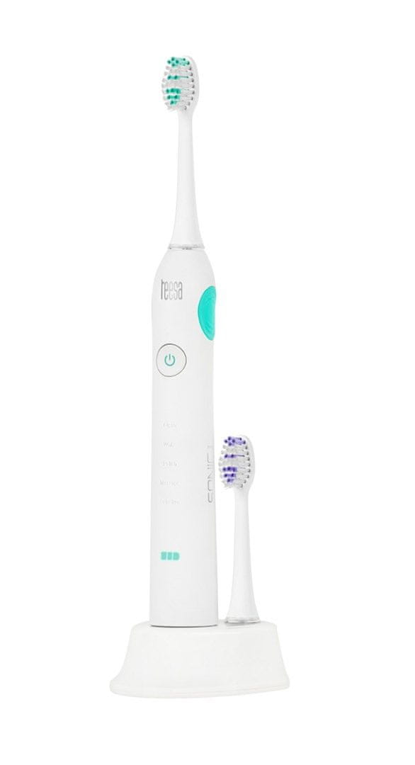 Sonic zobna ščetka Teesa Sonic Pro je vrhunski izdelek, zasnovan za učinkovito in temeljito čiščenje zob. Z 5 različnimi načini čiščenja (Poliranje, Čiščenje, Občutljivo, Masaža, Beljenje) vam omogoča prilagodljivo nego, ki ustreza vašim potrebam. Integriran dvosmeren časovnik zagotavlja, da vsako ščetkanje traja 2 minuti, kar je optimalno za ohranjanje zdravja vaših zob in dlesni.