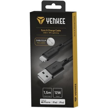 Kabel za sinhronizacijo in polnjenje USB A – MFi Lightning YENKEE YCU 615 BK