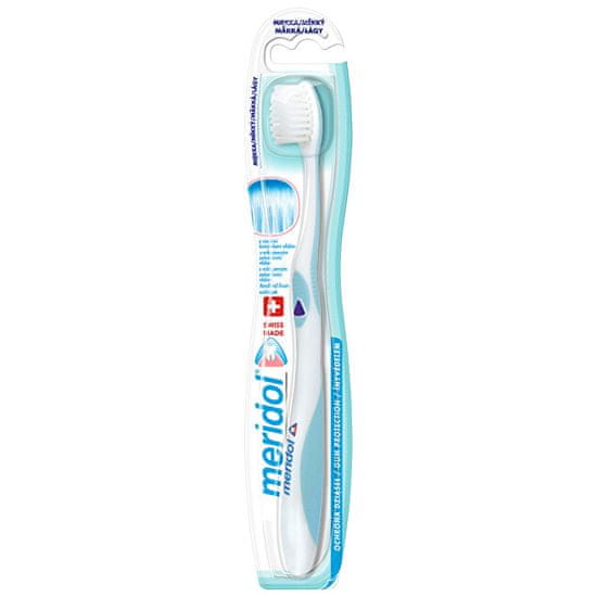 Zobna ščetka Meridol z izjemno tankimi ščetinami nežno in nežno čisti zobe in dlesni. Temeljito odstranjuje zobne obloge in tako pomaga preprečevati vnetje dlesni.