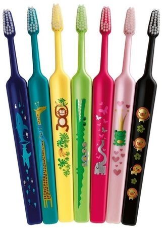 • otrokom prijazna zasnova izdelka, čopiči imajo pisane živalske potiske .