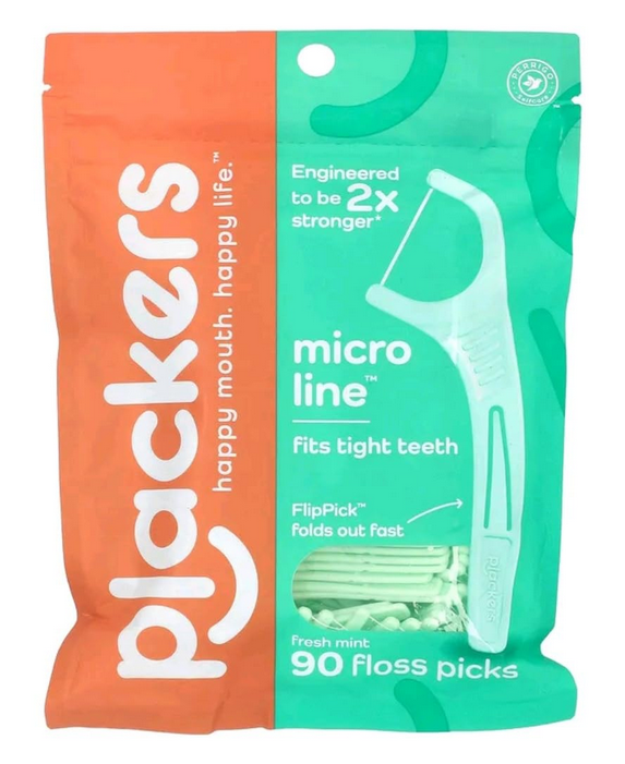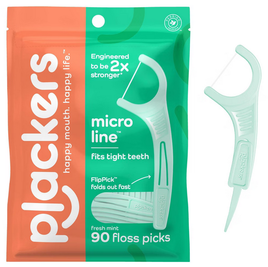 Zobna nitka z držalom in zobotrebcem, nitka metina Plackers, 90 kosov Celoten opis