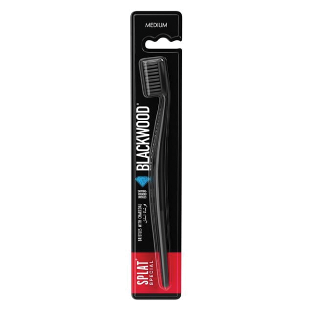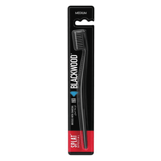 Zobna ščetka Splat Blackwood povrne zobem naravno belino in jih zaščiti pred kariesom. Ta ščetka ima srednjo trdoto, idealna za ljudi z zdravimi dlesnimi.