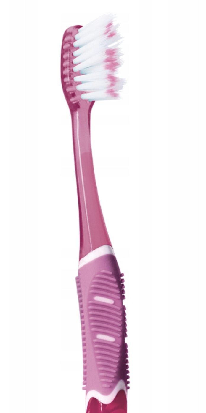 • Dvonivojske, nagnjene ščetine z ultra tanko strukturo popolnoma očistijo vse zobne površine , pri čemer nežno negujejo območja pod linijo dlesni in med zobmi.