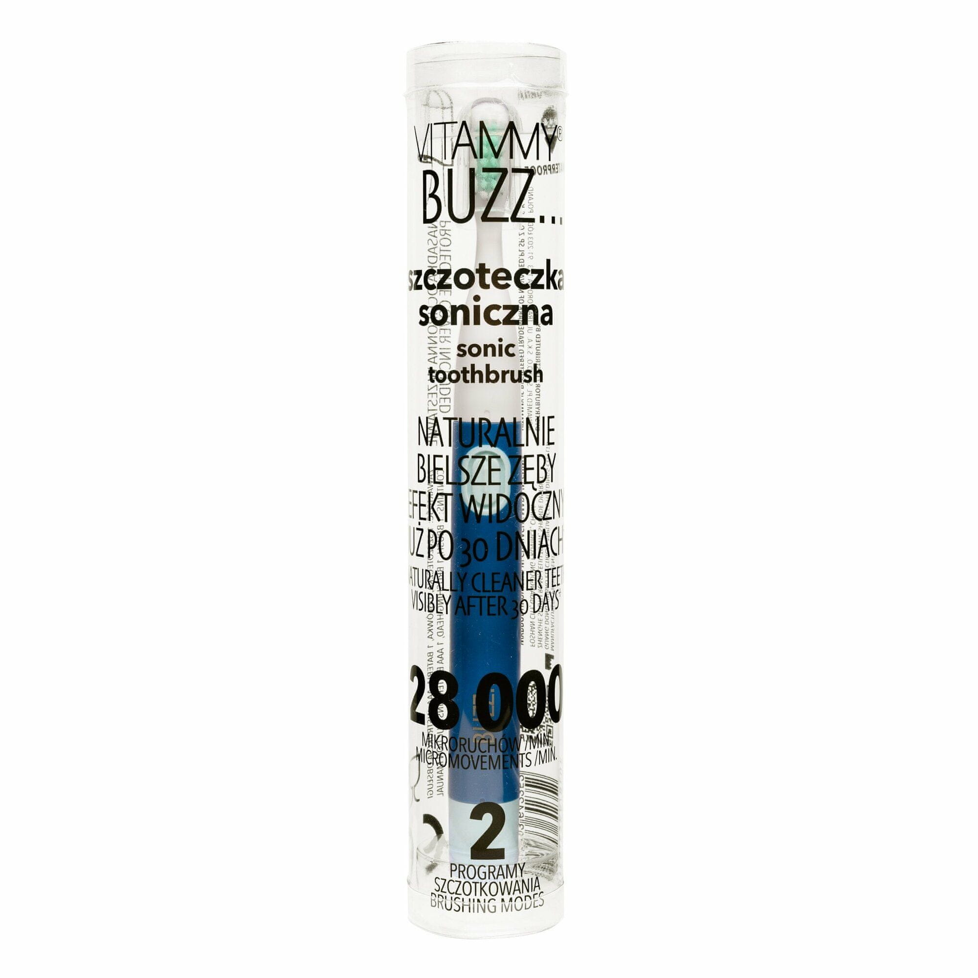 Vitammy BUZZ Sonic zobna ščetka z 28.000 mikro gibi, 2 programoma čiščenja, mornarsko modra