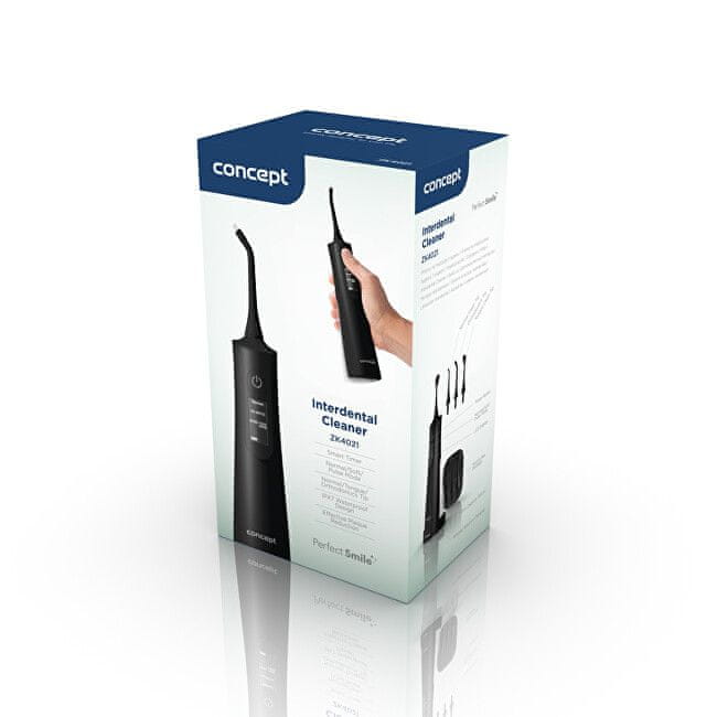 Pripomoček za medzobno higieno ZK4021 je odličen dodatek k vsakodnevni negi zob in dlesni. Zaradi visokega vodnega pritiska je bistveno učinkovitejša od običajnih medzobnih ščetk in zobnih nitk. Popolnoma očisti medzobne prostore, odstrani zobne obloge in masira dlesni. Redna uporaba znatno zmanjša tveganje za nastanek zobne gnilobe in zobnega kamna, izboljša splošno stanje dlesni in preprečuje vnetja. Brez težav lahko očistite tudi težko dostopne predele. Primeren je za nego zobnih kron, implantatov, mostičkov in fiksnih zobnih aparatov. Načini čiščenja ZK4021 ponuja 3 načine čiščenja: NORMAL za običajno ustno nego; SOFT za nežno čiščenje zob in dlesni ter PULSE za učinkovito odstranjevanje ostankov hrane in zobnih oblog. Zaradi zaslona LCD boste vedno vedeli, kateri način ste izbrali. Zamenljive šobe V osnovni paket so vključene 3 izmenljive šobe: šoba NORMAL bo pomagala odstraniti ostanke hrane in zobne obloge v ustih; šoba ORTHODONTICS bo pomagala odstraniti ostanke na težko dostopnih mestih okoli zobnih aparatov; šoba TONGUE pa je posebna šoba za čiščenje jezika, da bo vaš zadah ostal svež. Da bi ohranili visoko raven učinkovitosti čiščenja, priporočamo, da glave zamenjate vsakih 6 mesecev. Kakovostna izdelava Napravo ZK4021 odlikujeta sodobna zasnova in kompaktna oblika, zaradi katere odlično sede v roko. Zagotavlja zaščito IPX7, zato ga lahko sperete pod tekočo vodo. ZK4020 je opremljen z visokokakovostno Li-Ion baterijo, ki se polni z indukcijskim polnilnikom.