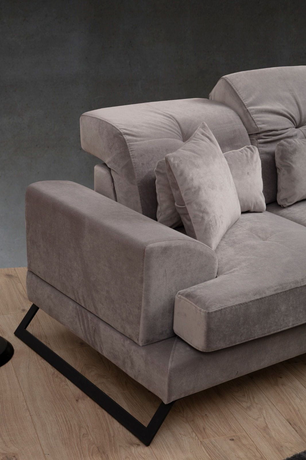 Okvir: BUKOV LES / IVERNA PLOŠČA Tkanina: 100 % POLYESTER Dolžina: 185 cm Širina: 100 cm Višina: 92 cm Pena: 28 DNS mehka siva pena / 24 DNS perje / vzmet na sredini Za sedenje 60% rezana pena / 40% silikonska pena za hrbet Sistem: Sistem kavča z nastavljivim mehanizmom naslonjala za hrbet Blazina: 60 % rezana pena / 40 % silikonska pena Velikost: 45 cm x 45 cm (2 kosa) Velikost: 55 cm x 32 cm (2 kosa) Prenosna blazina za sedenje/ fiksna blazina za hrbet Tkanina, ki se lahko suho čisti Noge: Kovinske noge: mat črne barve Višina pene: 23 cm Višina nog: 14 cm Število paketov: 2 190 × 97 × 59 cm / 52 kg (1 kos) 93 × 33 × 10 cm / 6 kg (1 kos)