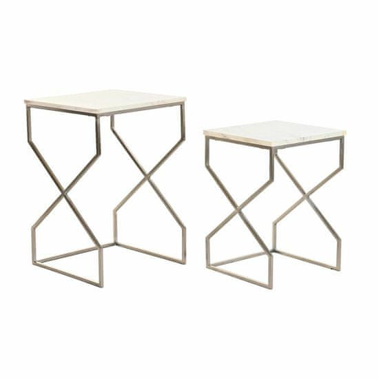 DKD Home Decor Komplet 2 majhnih mizic DKD Home Decor Silver Metal Marble 40 x 40 x 60,5 cm