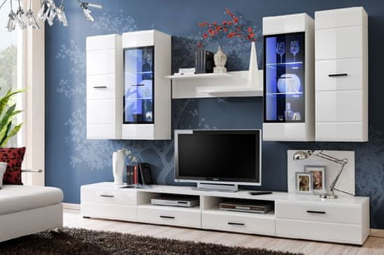Furnival Dnevna stena z osvetlitvijo Lauren - bela/bel sijaj