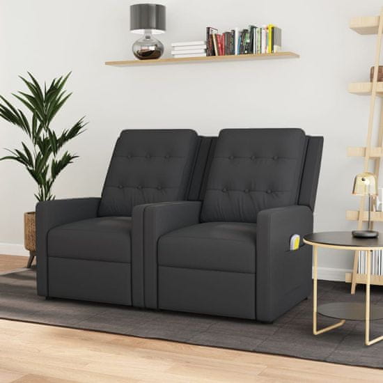 Greatstore 2-sedežni zložljivi masažni fotelj, temno sive barve, oblazinjen s tkanino