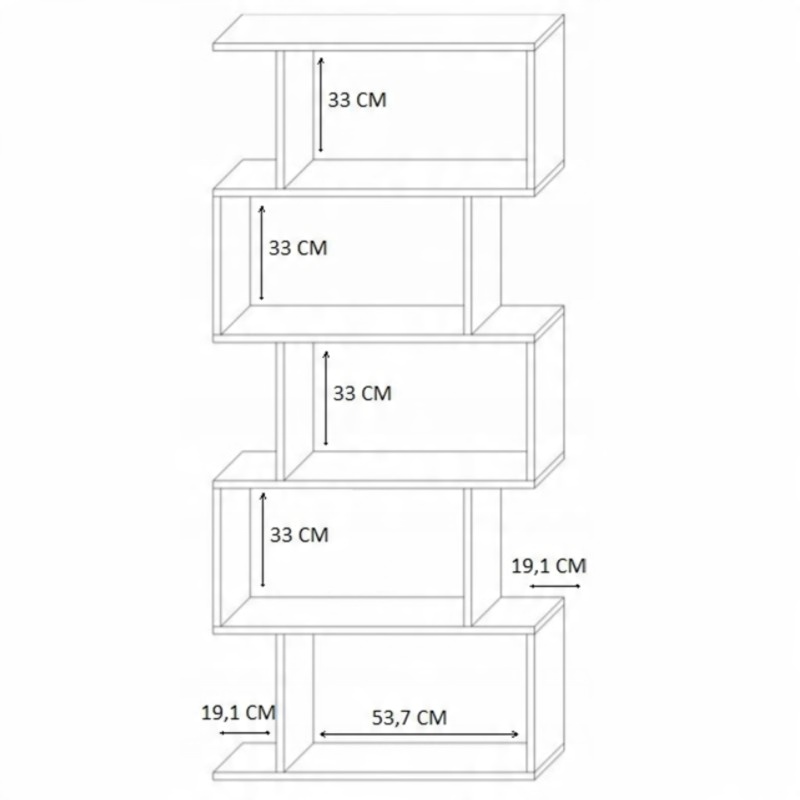 Sodobna polica za dnevno sobo, pisarno ali knjižnico. Ta polica se odlikuje po edinstveni zasnovi in funkcionalnosti. Ima številne odprte police, na katerih lahko razstavite knjige ali okrasne predmete. Enota je izdelana iz visokokakovostne 18 mm laminirane plošče, za katero je značilna povečana odpornost proti praskam in obrabi.