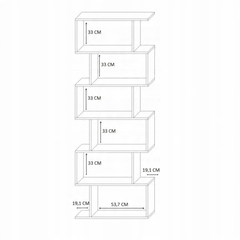 Sodobna polica za dnevno sobo, pisarno ali knjižnico. Ta polica se odlikuje po edinstveni zasnovi in funkcionalnosti. Ima več odprtih polic, na katerih lahko razstavite knjige ali okrasne predmete. Enota je izdelana iz visokokakovostne 18 mm laminirane plošče, za katero je značilna povečana odpornost proti praskam in obrabi.