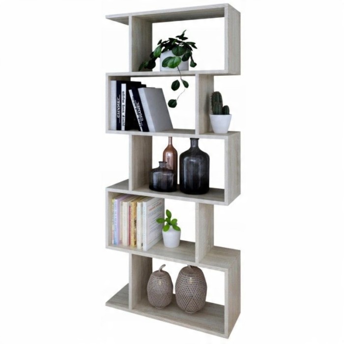 Sodobna polica za dnevno sobo, pisarno ali knjižnico. Ta polica se odlikuje po edinstveni zasnovi in funkcionalnosti. Ima številne odprte police, na katerih lahko razstavite knjige ali okrasne predmete. Enota je izdelana iz visokokakovostne 18 mm laminirane plošče, za katero je značilna povečana odpornost proti praskam in obrabi.