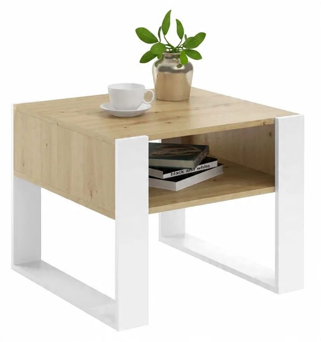 shumee Kaja kvadratna klubska mizica 60x60 bela/umetniški hrast za dnevno sobo Klubska mizica MK
