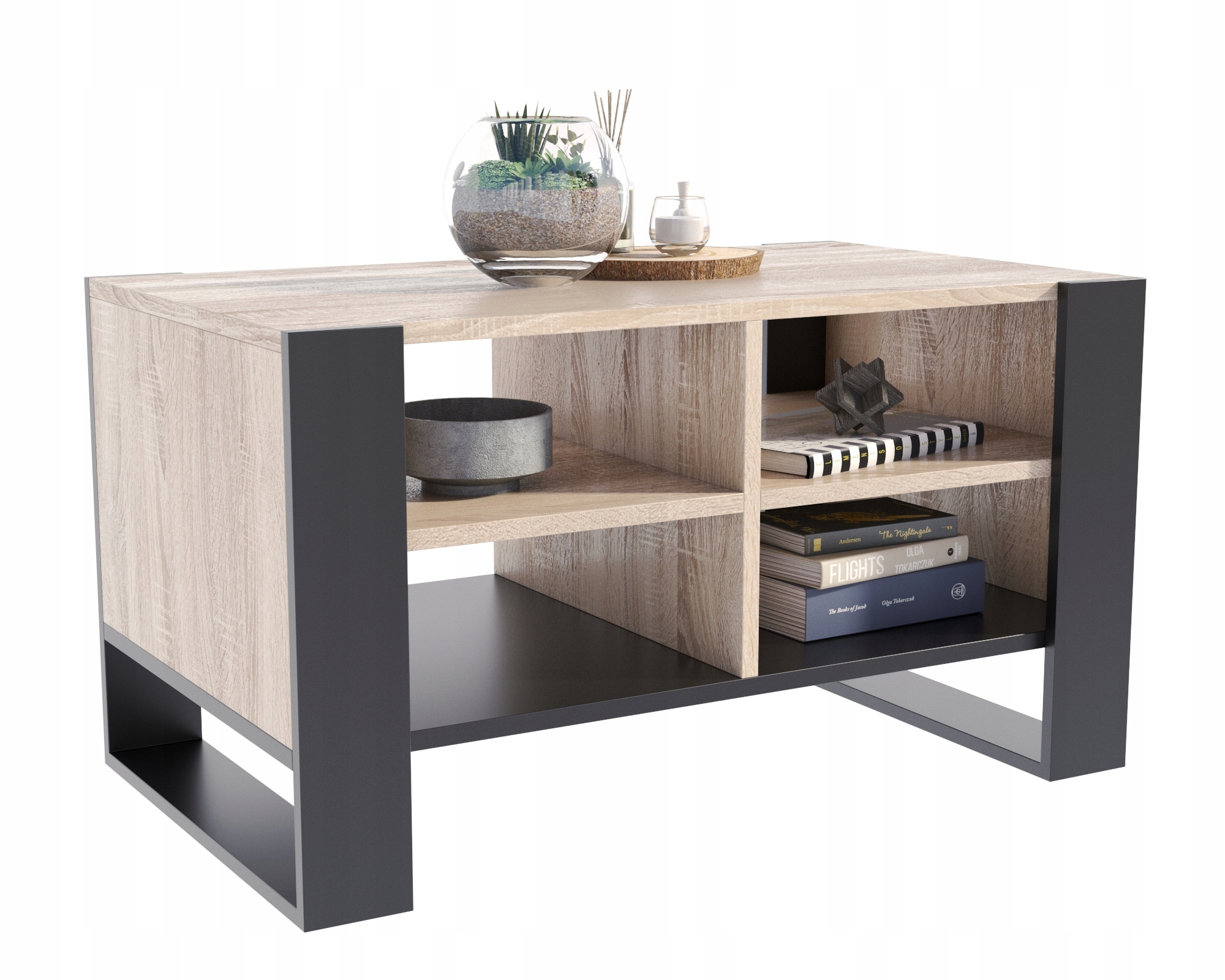 Klubska mizica Figa Loft v barvi hrasta Sonoma/črne za dnevno sobo s polico LOFT