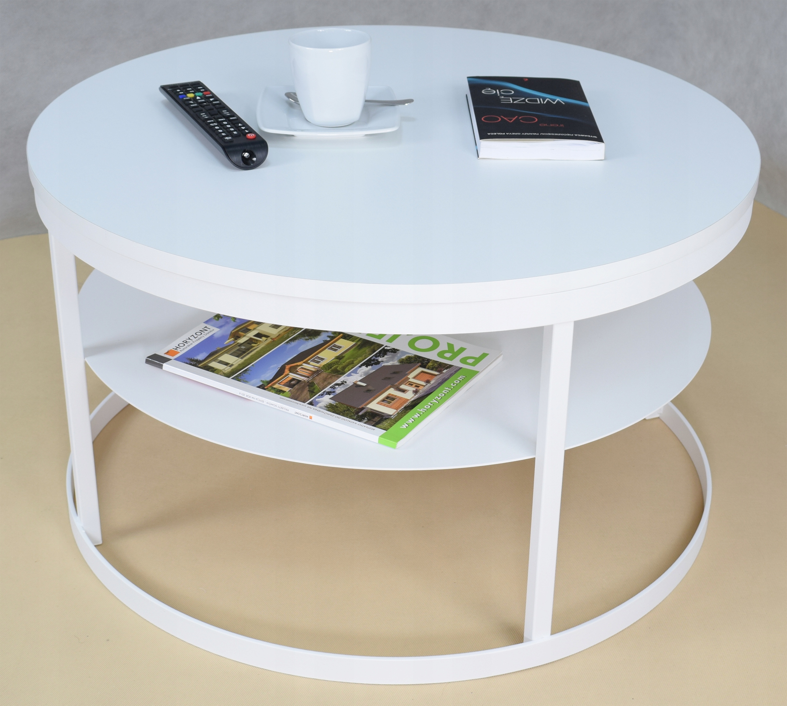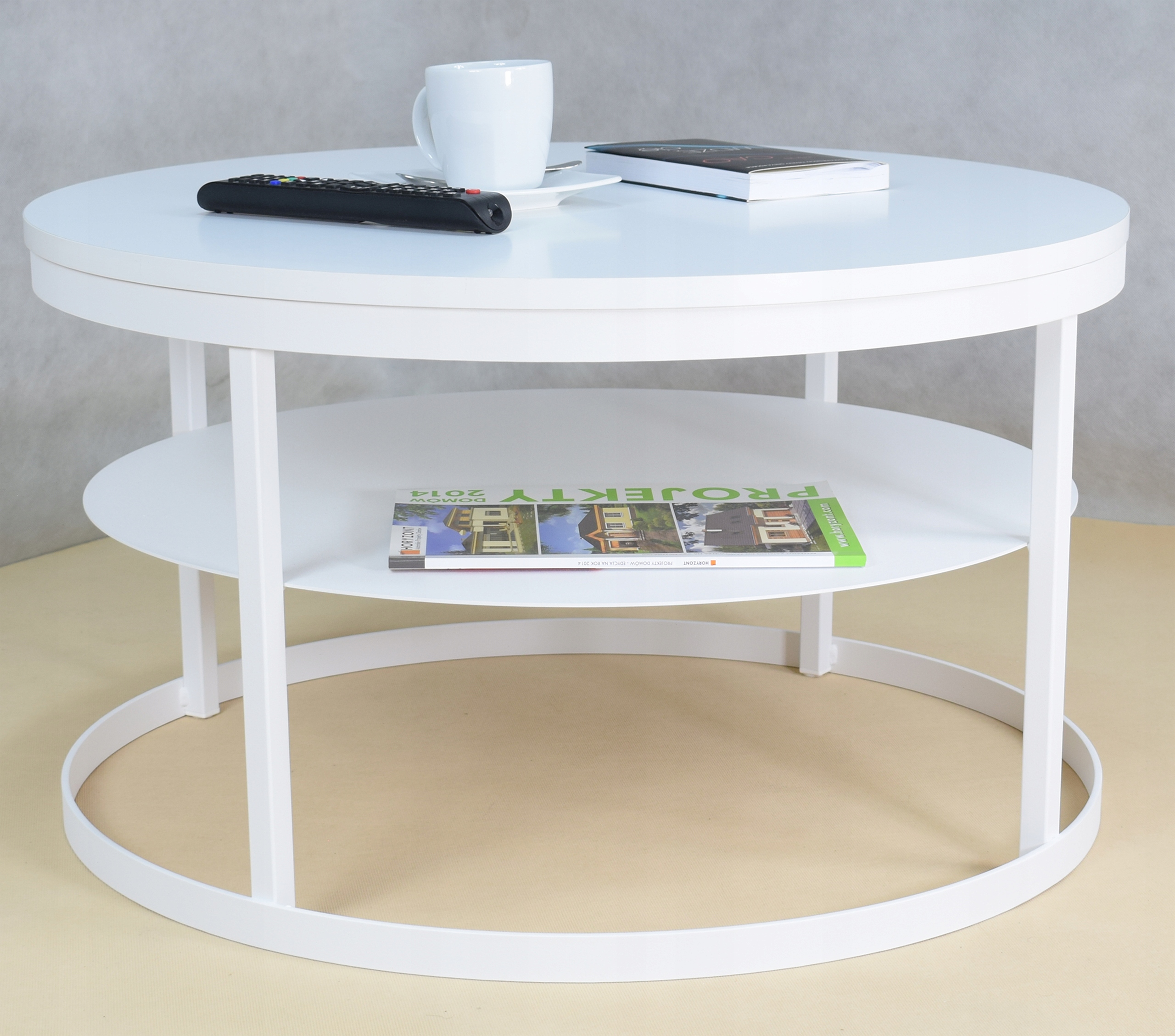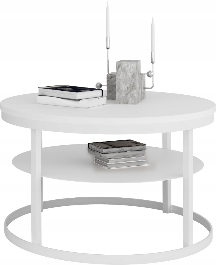 shumee Klubska mizica s polico, okrogla, fi75, iz profilov 20x20, mat bela, mat bela