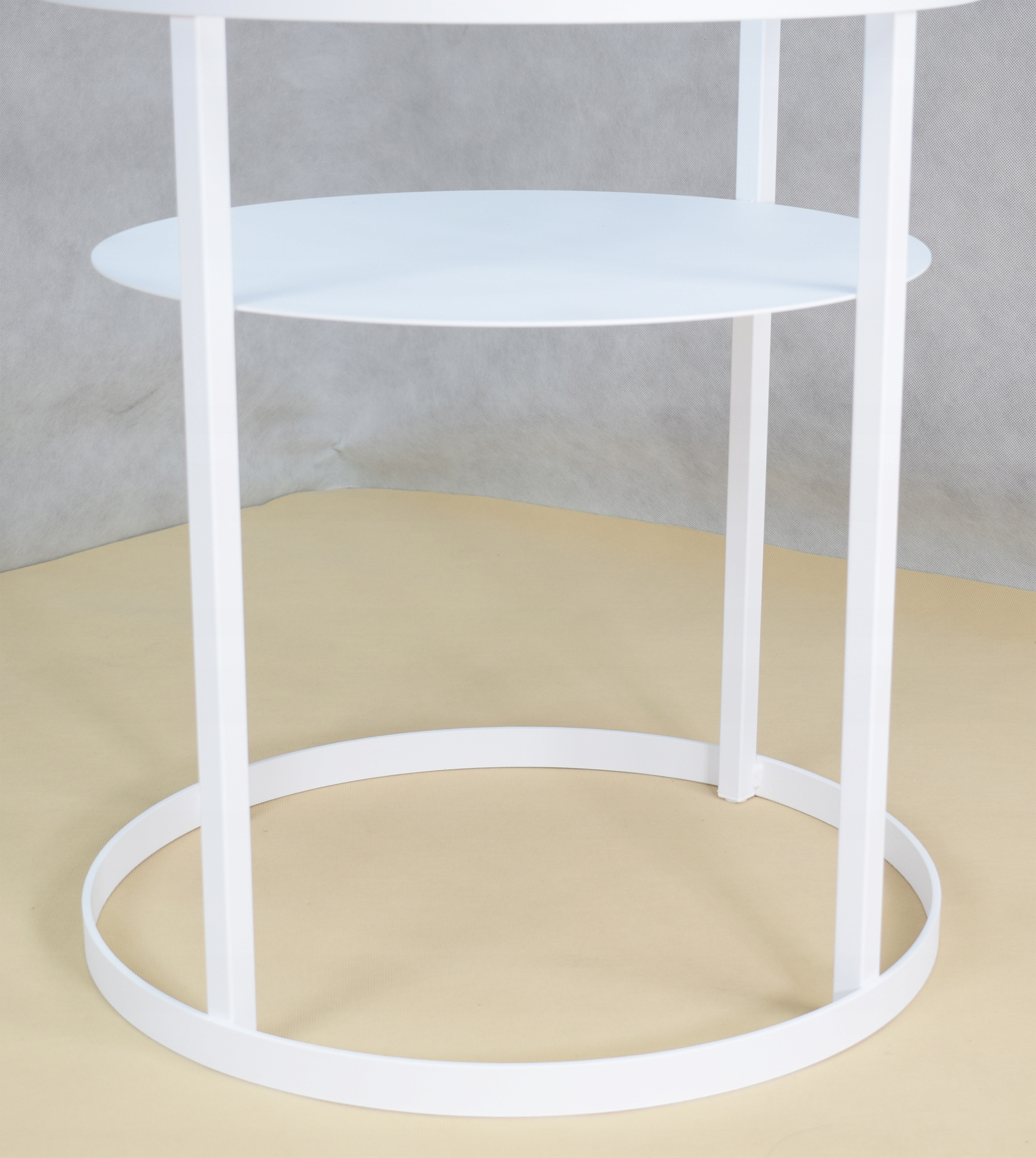 Edinstvena, praktična in elegantna, a preprosta klubska mizica. Kombinacija kovine z laminirano ploščo (iverno ploščo) v PVC furnirju. Masivna okrogla plošča debeline 1,8 cm zagotavlja edinstven dizajn naše mize. Okvir je izdelan iz močnega in vzdržljivega profila 20×20 mm. Imamo lastno opremo za prašno lakiranje, zato se postopka lotevamo profesionalno. Struktura mize je pobarvana z dvema slojema: prvi, fosfatni sloj, razmaščuje, čisti in preprečuje korozijo. Drugi sloj je fino teksturiran (odporen proti praskam) prašno lakiran. Miza je izdelana po najvišjih standardih.