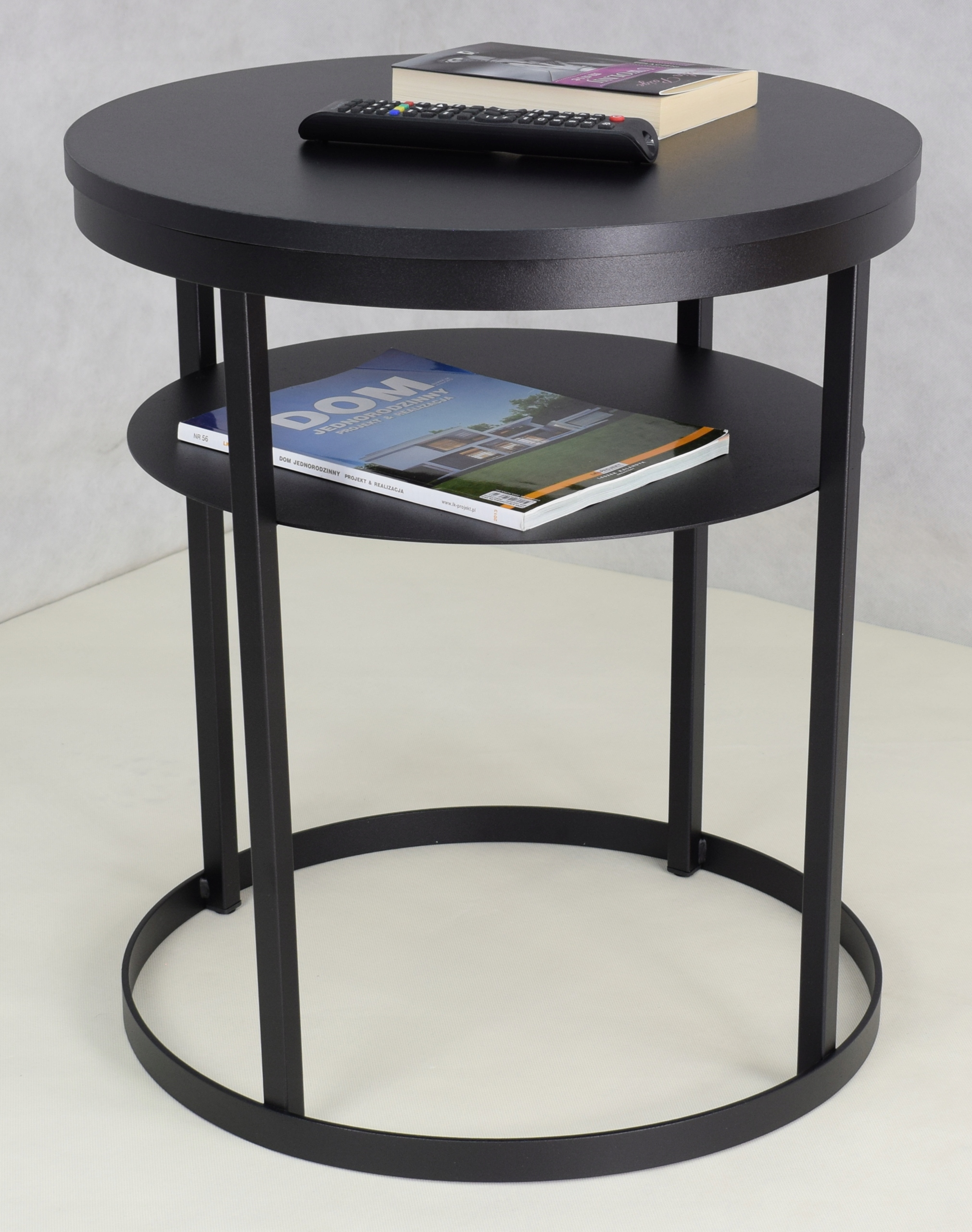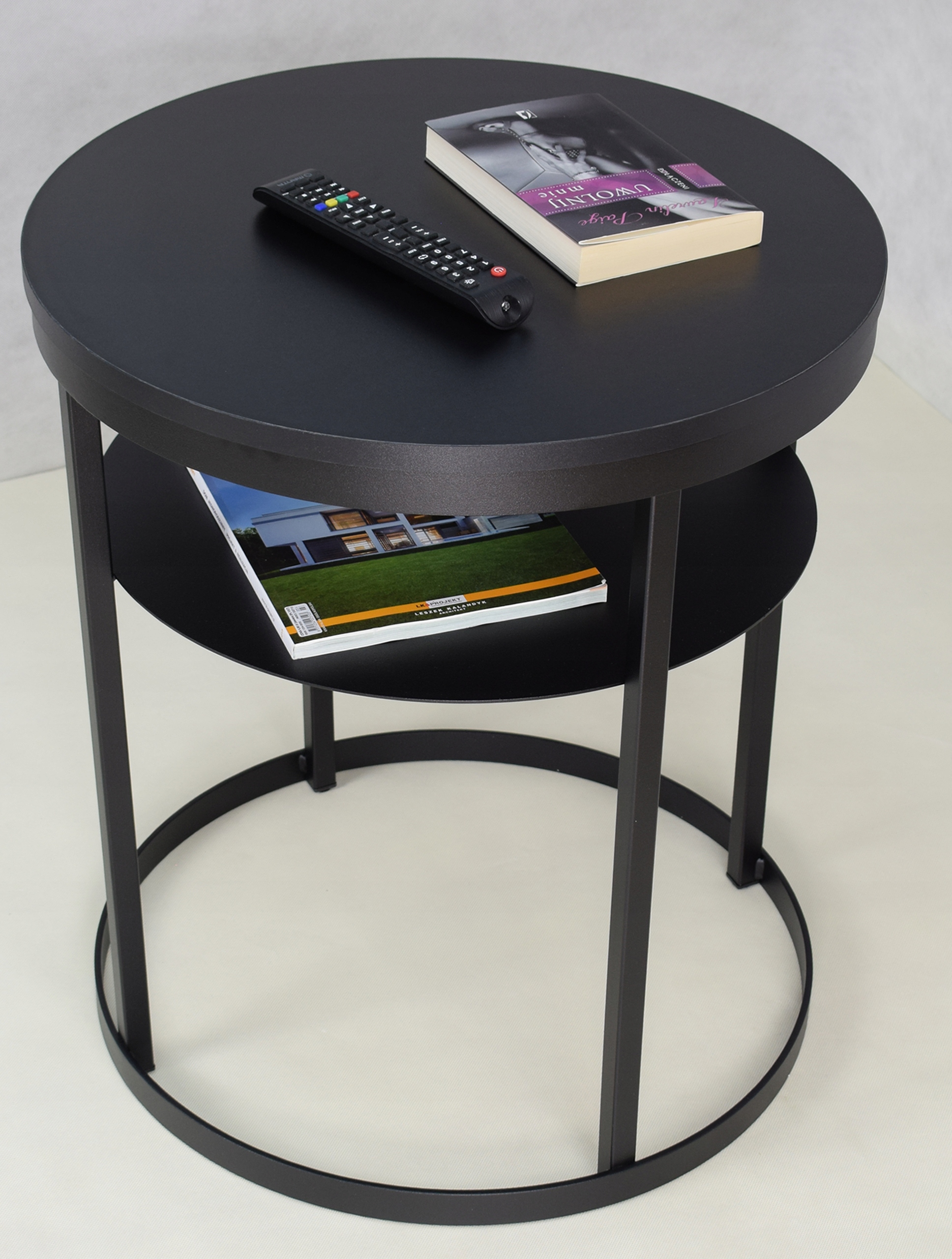 shumee Klubska mizica s polico, okrogla, premer 55, izdelana iz profilov 20x20, črna črna