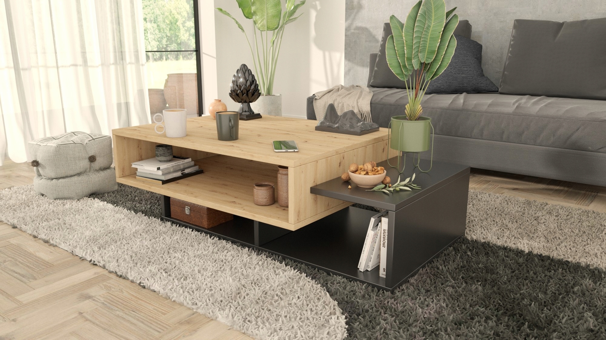 shumee Klubska mizica Sara, umetniški hrast/črna, za dnevno sobo, klubska mizica, dnevna soba, pisarna, MK