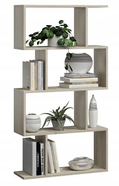 shumee Knjižna omara Bask 4, hrast Sonoma, stoječa, pregrada za dnevno sobo, pisarno, spalnico, MK