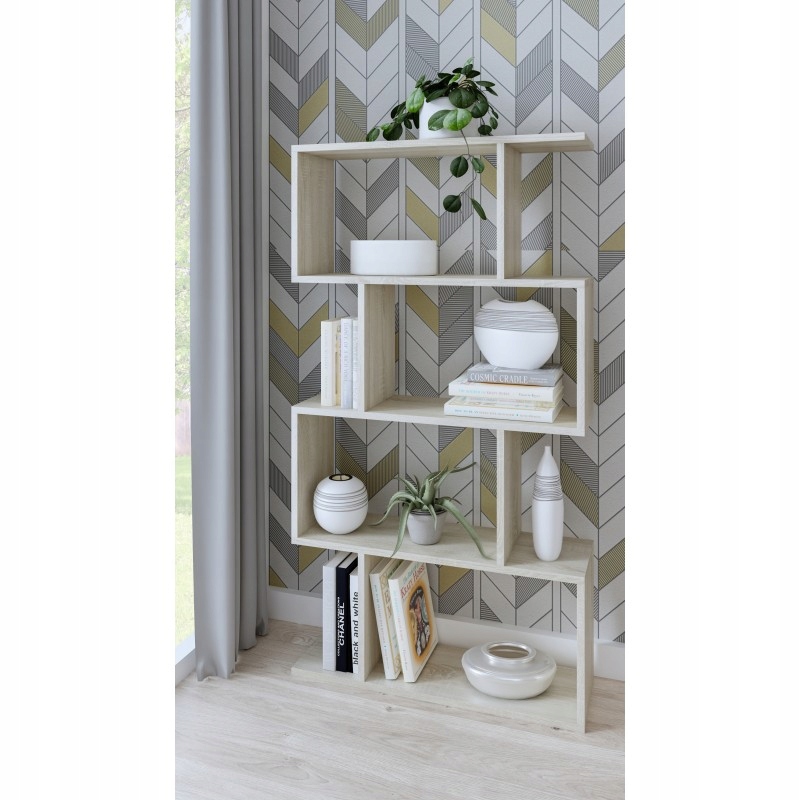 Sodobna polica za dnevno sobo, pisarno ali knjižnico. Ta polica se odlikuje po edinstveni zasnovi in funkcionalnosti. Ima številne odprte police, na katerih lahko razstavite knjige ali okrasne predmete. Enota je izdelana iz visokokakovostne 18 mm laminirane plošče, za katero je značilna povečana odpornost proti praskam in obrabi.