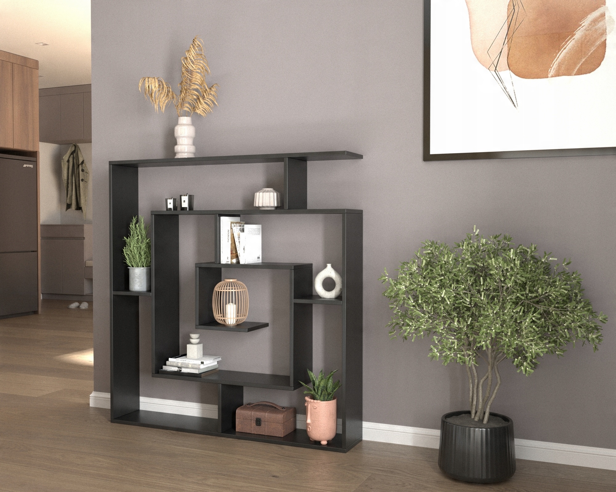 Polica se lahko uporablja kot stoječa polica ali kot viseča polica. Izdelek je prekrit na obeh straneh – lahko se uporablja kot delilnik prostora.