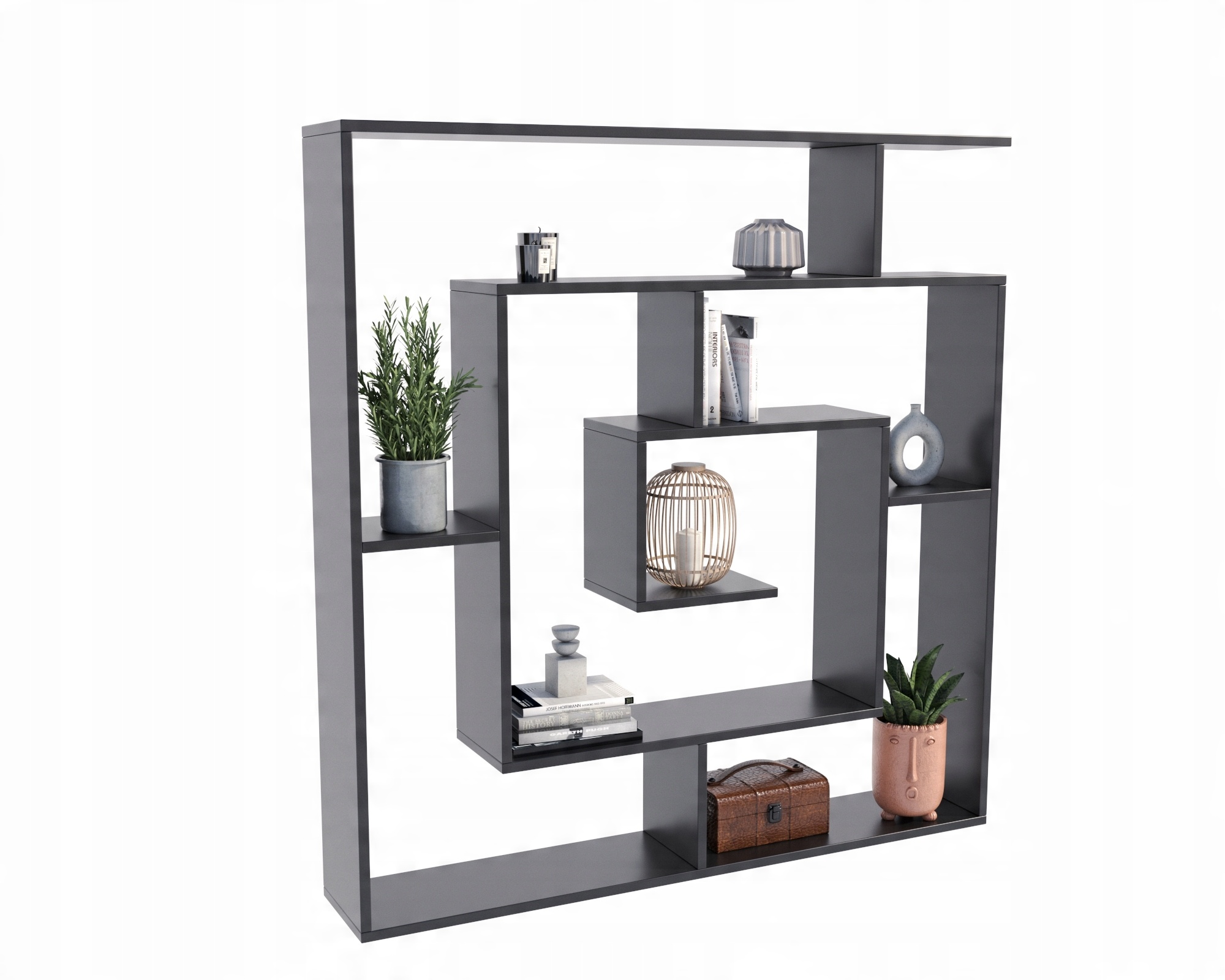 Ta polica ima geometrijsko silhueto, ki bo zagotovo sodoben poudarek v vaši dnevni sobi. Izdelana je iz 18 mm laminirane plošče v različnih barvah, med katerimi lahko izbirate. Popolnoma se zlije z vsakim slogom notranje opreme.