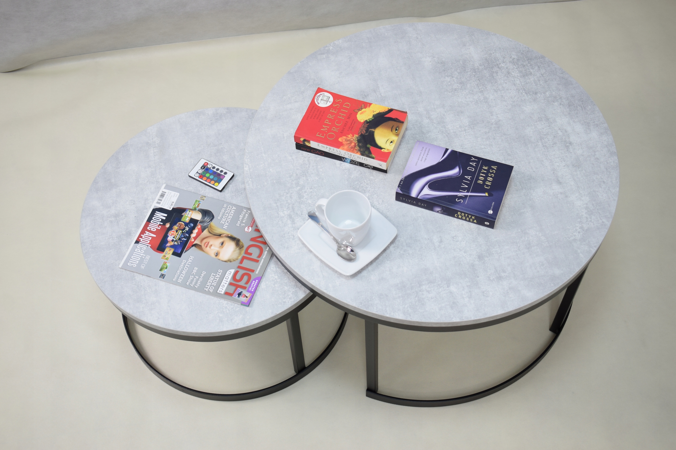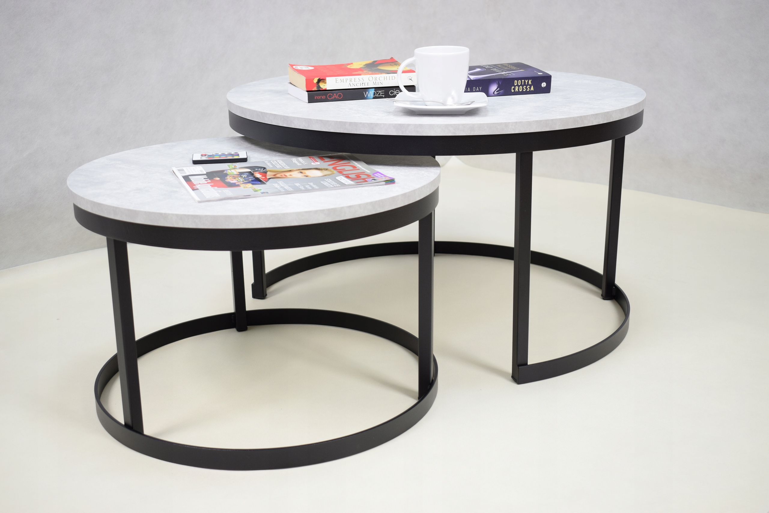 Vabimo vas tudi na naše druge dražbe. Specializirani smo za laserski razrez in prašno barvanje. Vsega se lotevamo profesionalno in premišljeno. Ta dražba je za komplet okroglih profilnih miz z zgornjim delom v dekorju svetlega betona.