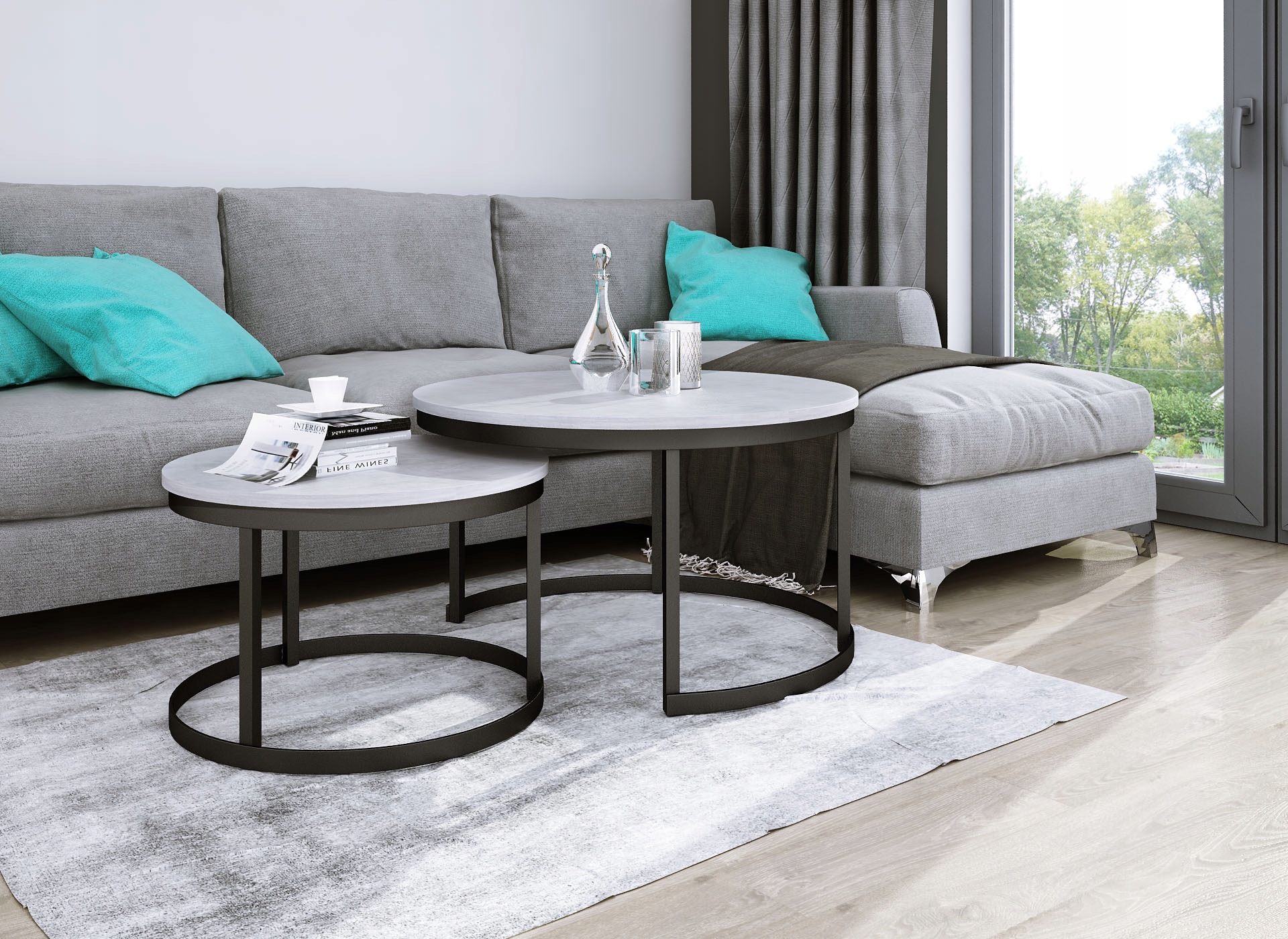 shumee Komplet okroglih klubskih mizic iz profilov 20x20, črni beton, svetli