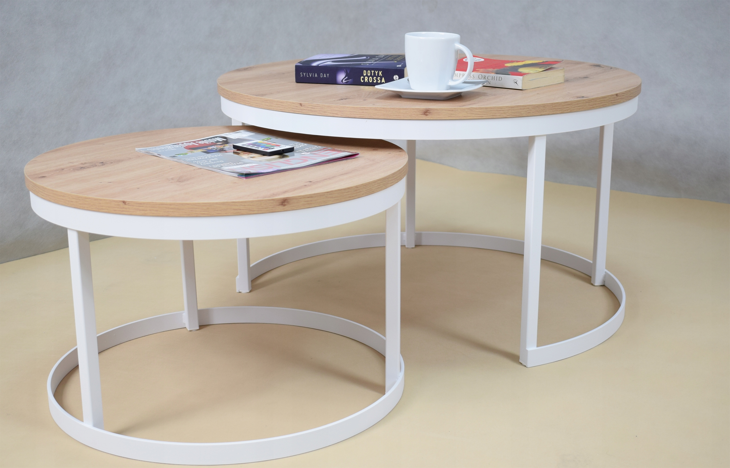 shumee Komplet okroglih klubskih mizic iz profilov 20x20 v mat beli in umetniški hrastovi barvi