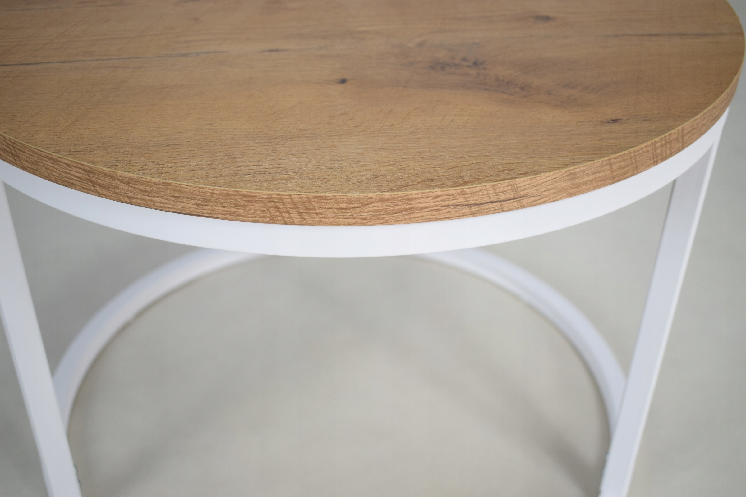 shumee Komplet okroglih klubskih mizic, privijačenih iz profilov 20x20, bela mat hrastova barva Lancelot