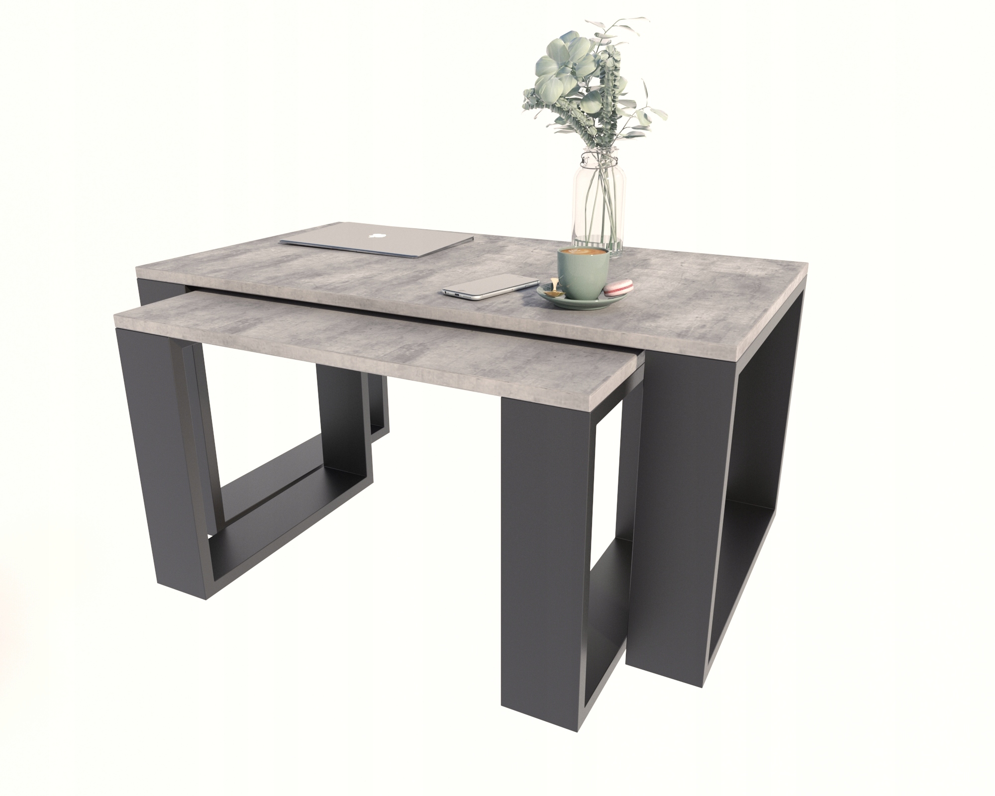 Komplet raztegljivih miz LOFT Westa Klubska mizica, BETONSKA ČRNE
