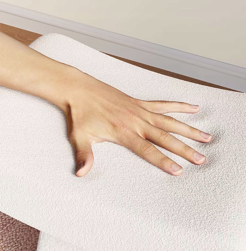 Tabure je oblazinjen s plišasto tkanino, ki je zelo trpežna in odporna na poškodbe. Material je podoben volni in vam zagotavlja udoben prostor za počitek. Poleg tega je konstrukcija izdelana iz MDF, noge pa iz bukovega lesa, kar zagotavlja vzdržljivost pohištva.