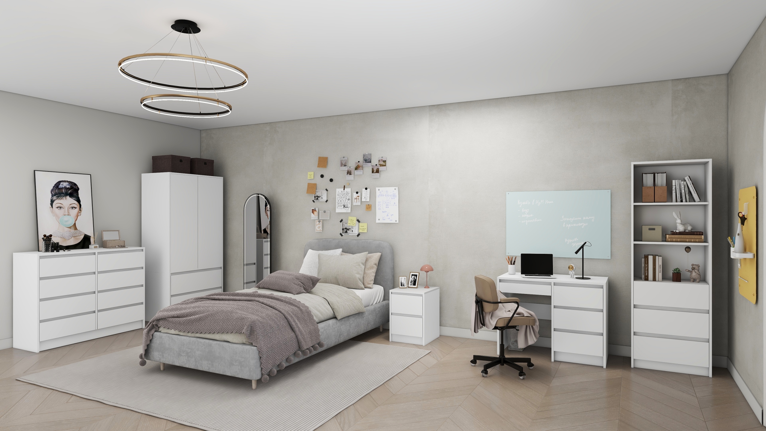 Predstavljamo vam moderno nočno omarico, ki združuje funkcionalnost in eleganco ter se zaradi minimalističnega dizajna popolnoma prilega vsaki notranjosti. Naša omarica je poljski izdelek iz visokokakovostne iverne plošče in vodil s krogličnimi ležaji, kar zagotavlja vzdržljivost in eleganten videz za prihodnja leta. Ponujamo jo v 8 različnih barvnih različicah, tako da jo lahko preprosto uskladite z vašo notranjostjo!
