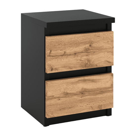 shumee NOČNA OMARICA ČRNI HRAST WOTAN 30 CM 2 PREDALA TV MIZICA ZA SPALNICO V PODSTREŠJU