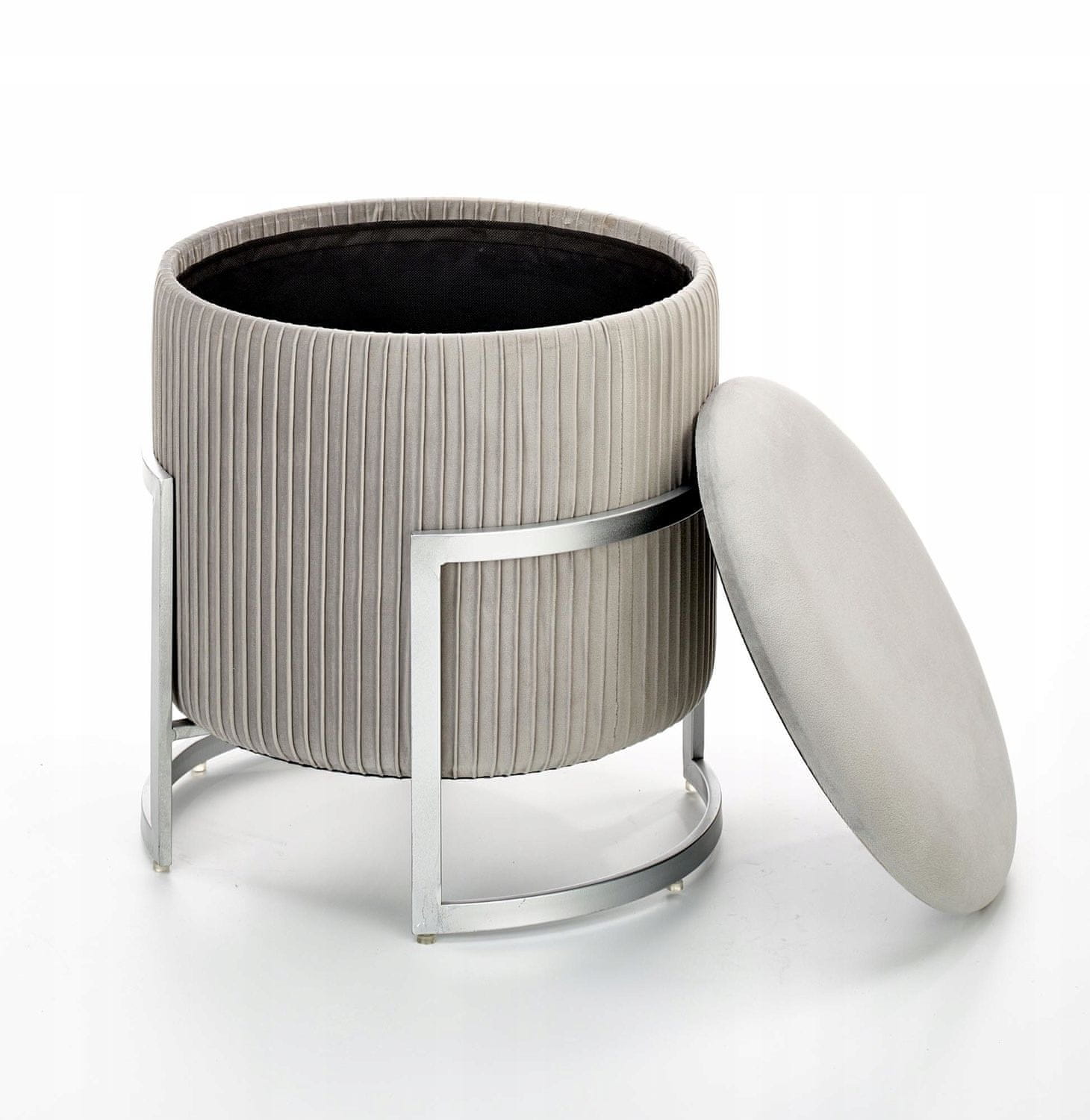 Oblazinjena tabure s predalom za shranjevanje, odpiranje CRICKET svetlo siva / srebrna