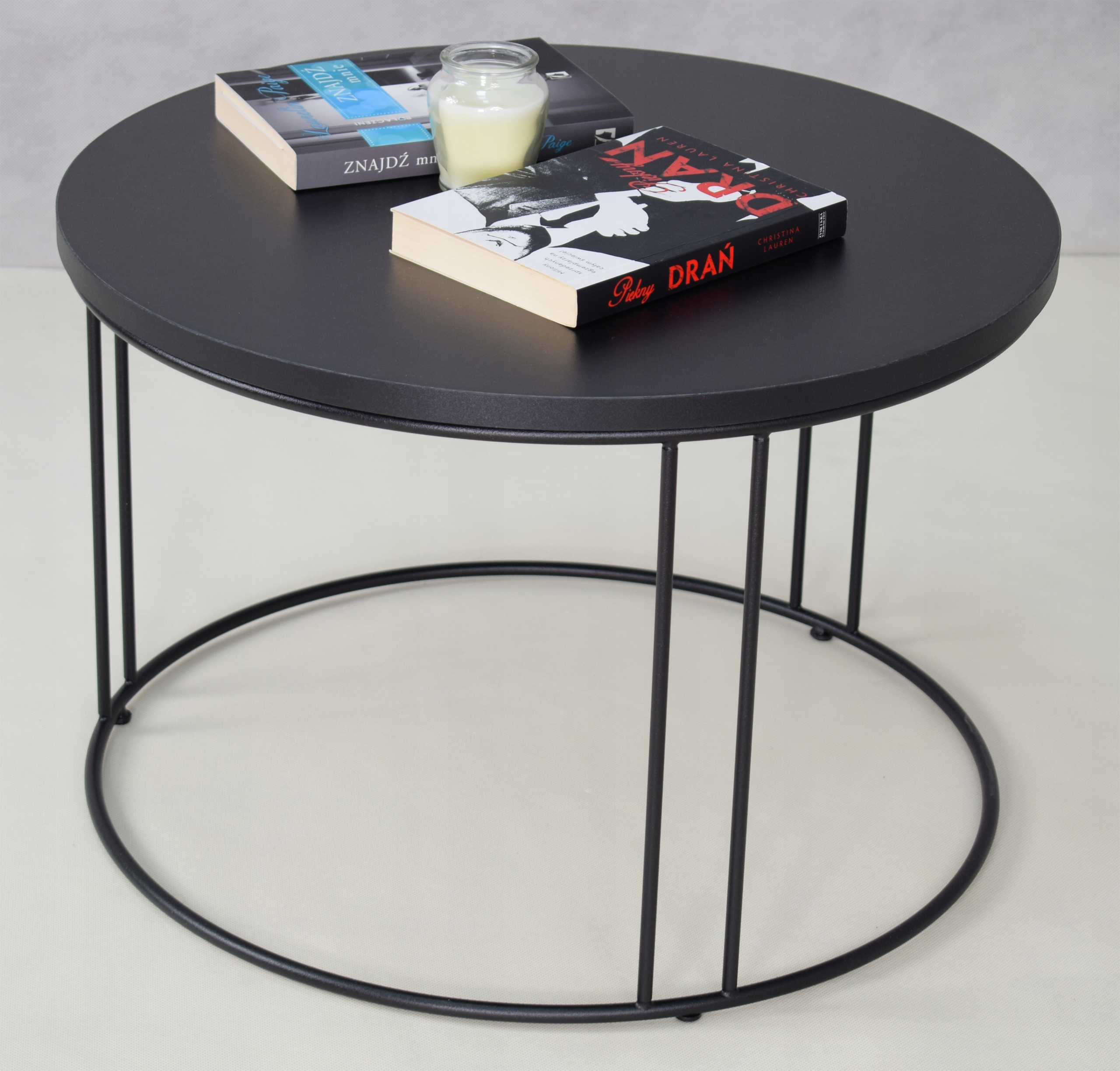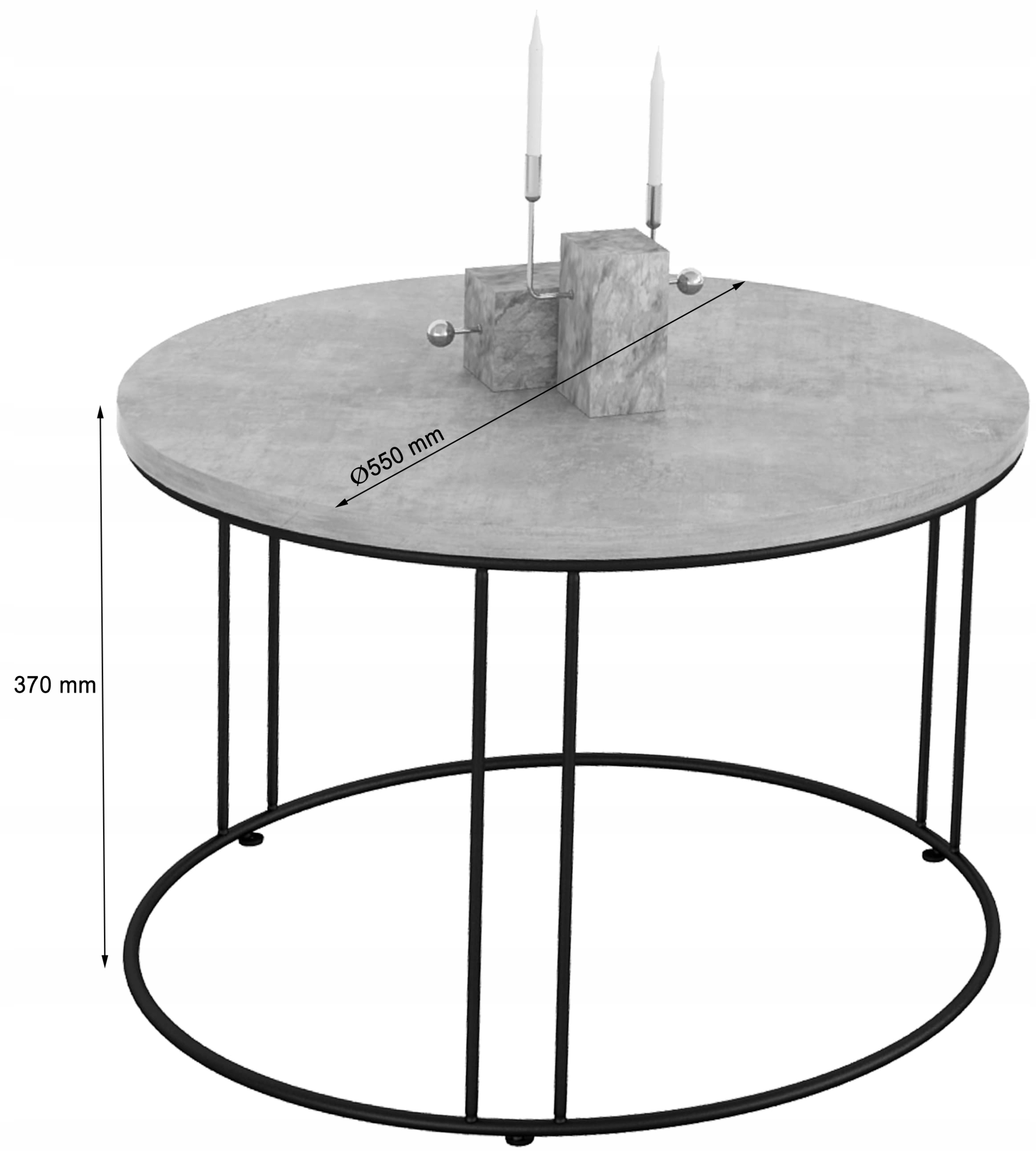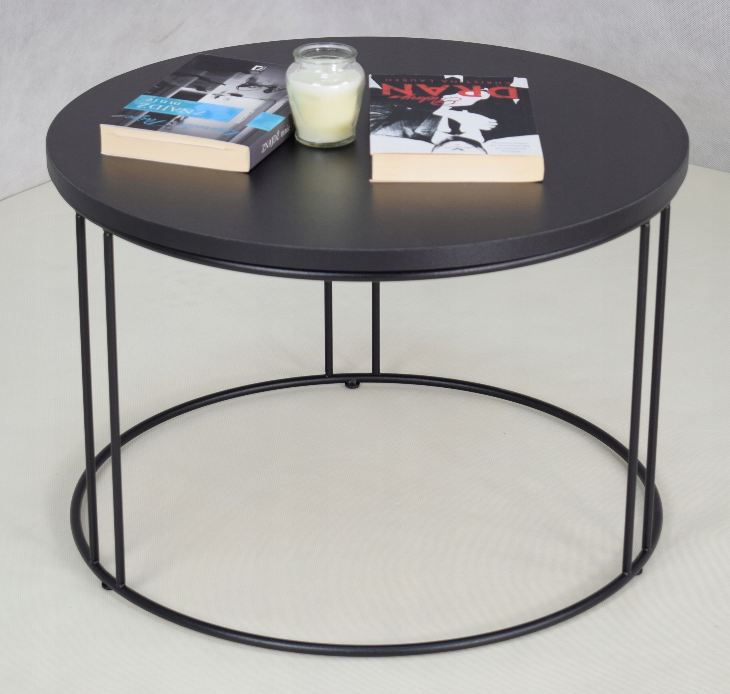 Edinstvena, praktična in elegantna, a preprosta klubska mizica. Kombinacija kovine z laminirano ploščo (iverno ploščo) v PVC furnirju. Masivna okrogla plošča, debeline 1,8 cm, zagotavlja edinstven dizajn naše mize. Okvir je izdelan iz močne in trpežne 8 mm žice. Imamo lastno opremo za prašno barvanje, zato se postopka lotevamo profesionalno. Struktura mize je barvana z dvema slojema: prvi sloj (fosfat) razmaščuje, čisti in preprečuje korozijo. Drugi sloj je fino teksturiran prašni premaz (odporen proti praskam). Miza je izdelana po najvišjih standardih.