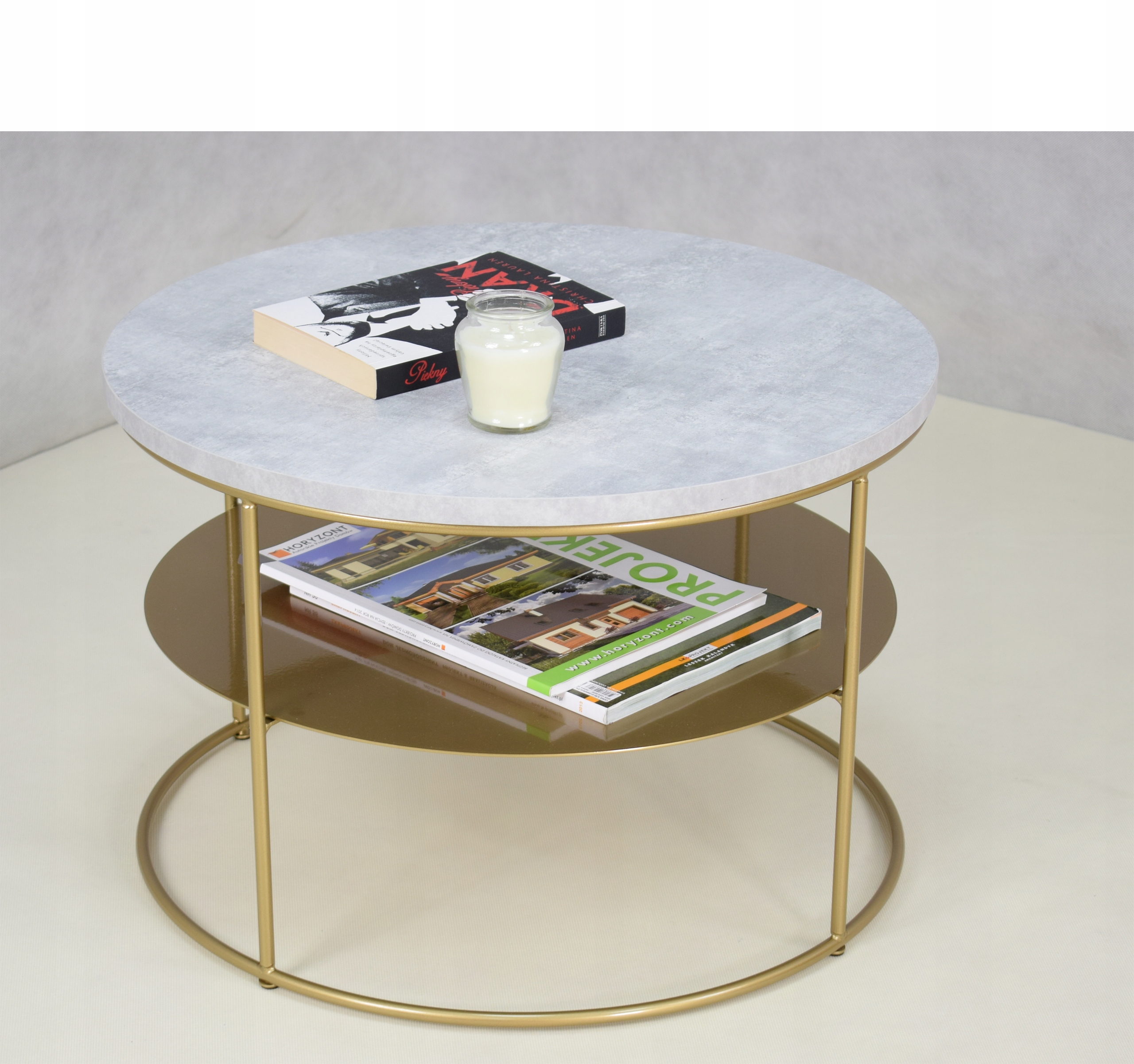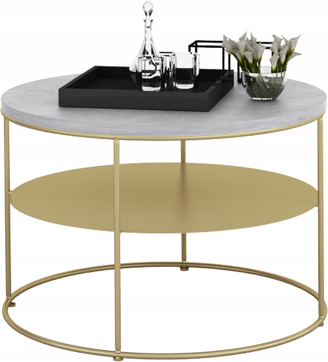 shumee Okrogla žična miza s polico 4TP55h37 Svetlo zlata betonska