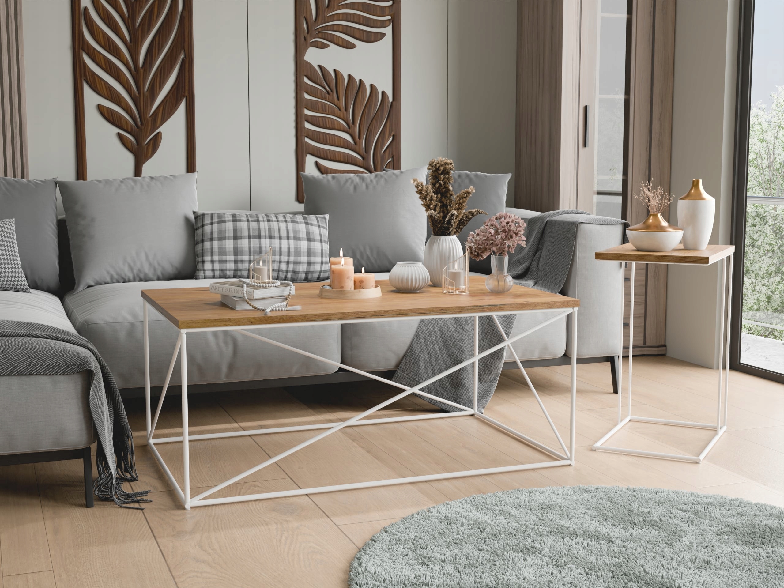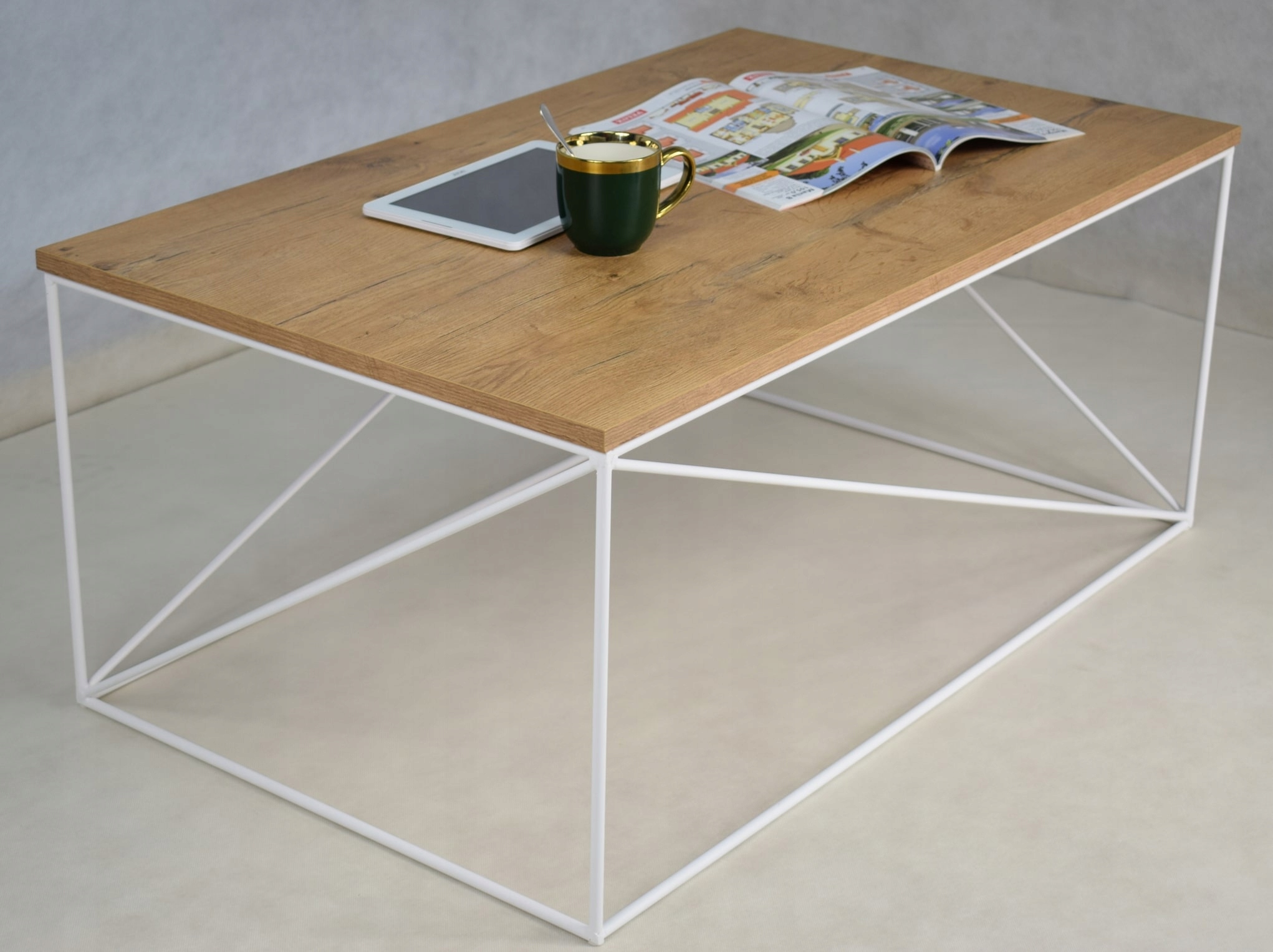 Edinstvena, praktična in elegantna, a preprosta klubska mizica. Kombinacija kovine z laminirano ploščo (iverno ploščo) v PVC furnirju. Trdna pravokotna plošča debeline 1,8 cm zagotavlja edinstven dizajn naše mize. Okvir je izdelan iz močne in vzdržljive 8 mm žice. Imamo lastno opremo za prašno lakiranje, zato se postopka lotevamo profesionalno. Struktura mize je pobarvana z dvema slojema: prvi sloj (fosfat) razmaščuje, čisti in preprečuje korozijo. Drugi sloj je fino teksturiran prašni premaz (odporen proti praskam). Miza je izdelana po najvišjih standardih.