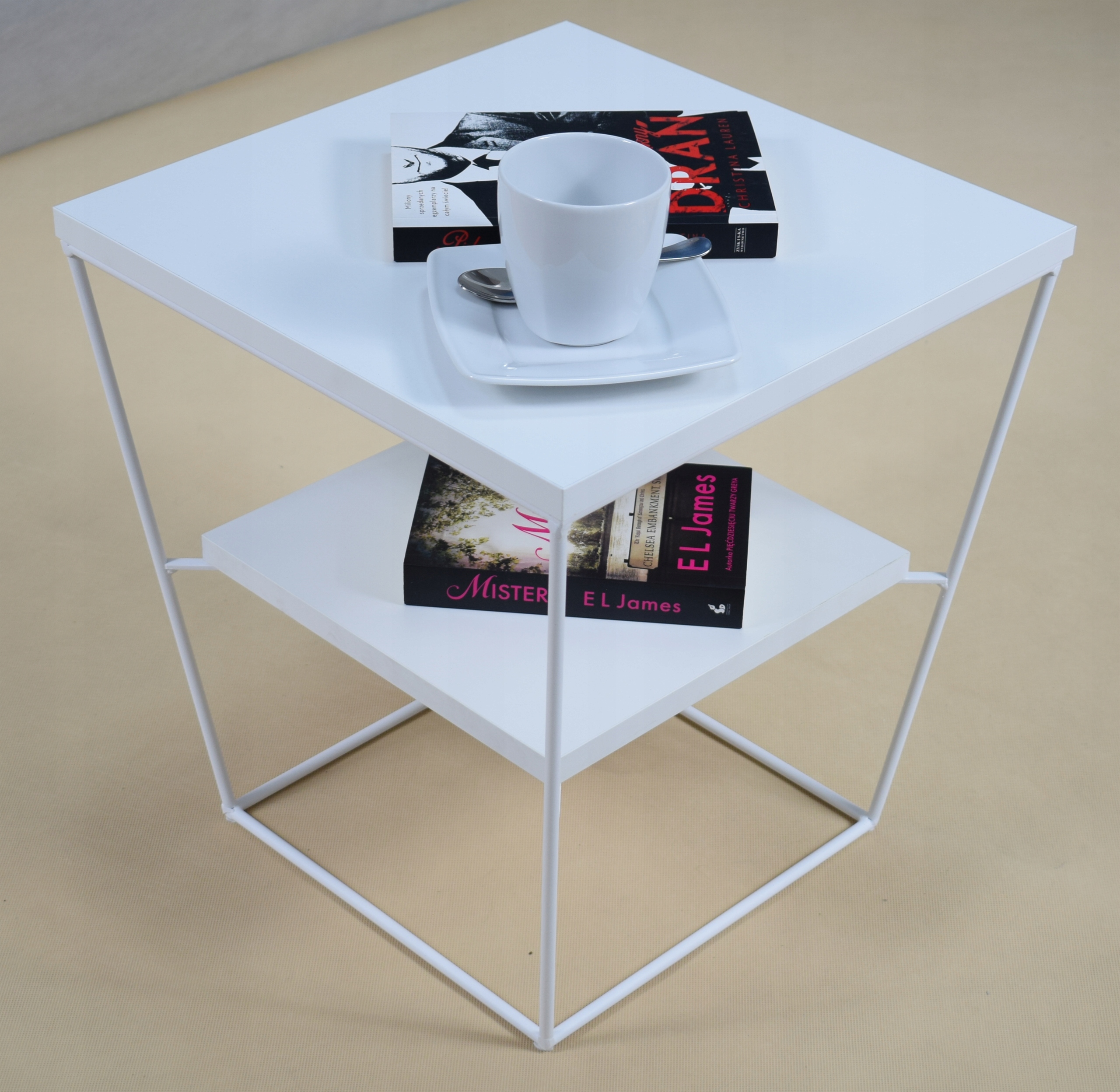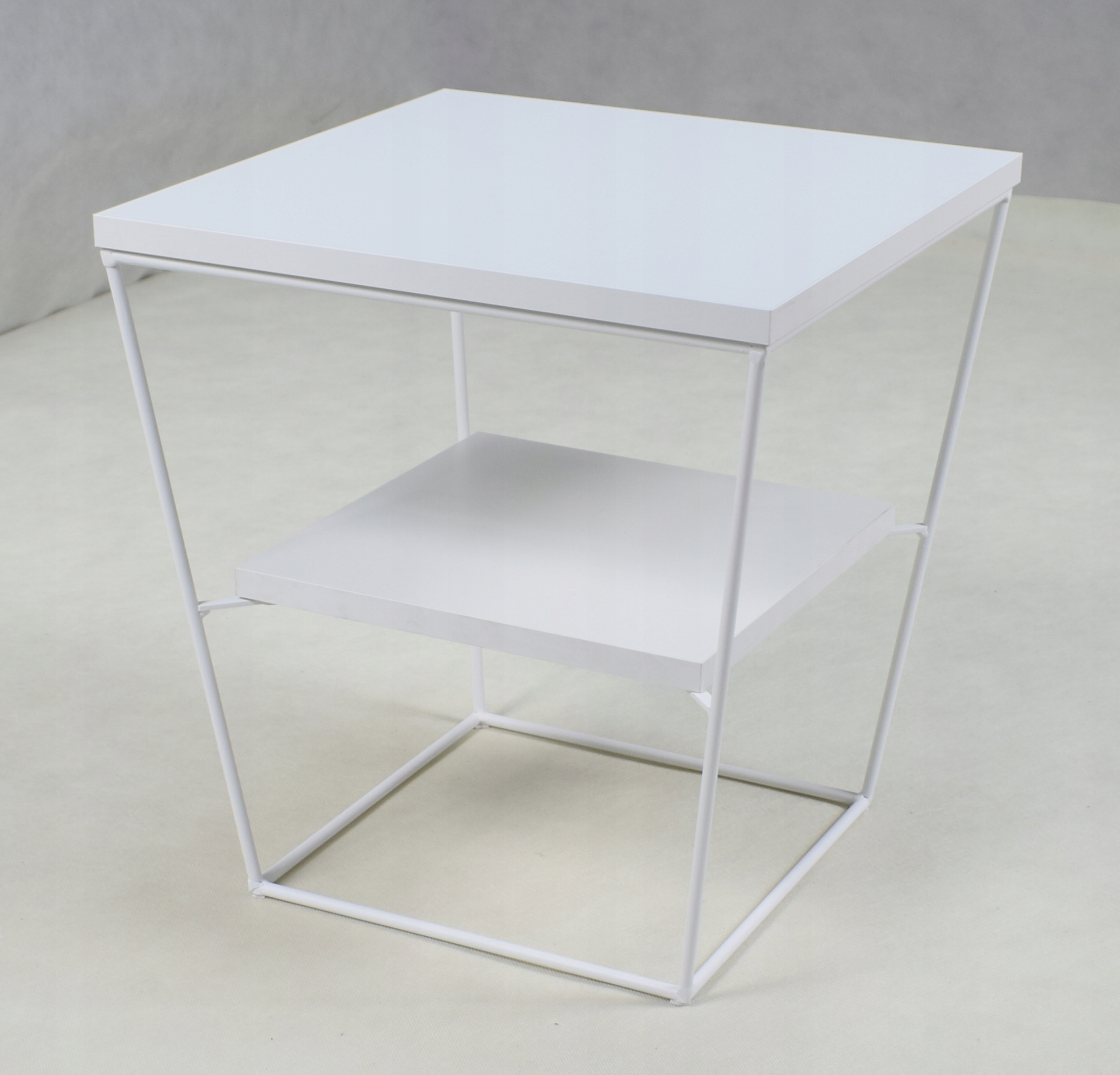 Edinstvena, praktična in elegantna, a preprosta klubska mizica. Kombinacija kovine in laminirane plošče (iverne plošče) s PVC furnirjem. Masivna, kvadratna plošča, debeline 1,8 cm. Okvir je izdelan iz močne in vzdržljive 8 mm žice. Imamo lastno delavnico za prašno lakiranje, zato se zadeve lotevamo profesionalno. Konstrukcije miz so barvane z dvema slojema: prvi fosfatni sloj razmasti, očisti in prepreči korozijo. Drugi sloj je dejanska prašno lakirana barva s fino teksturo (odporna na praske). Miza je izdelana iz najvišje kakovosti.