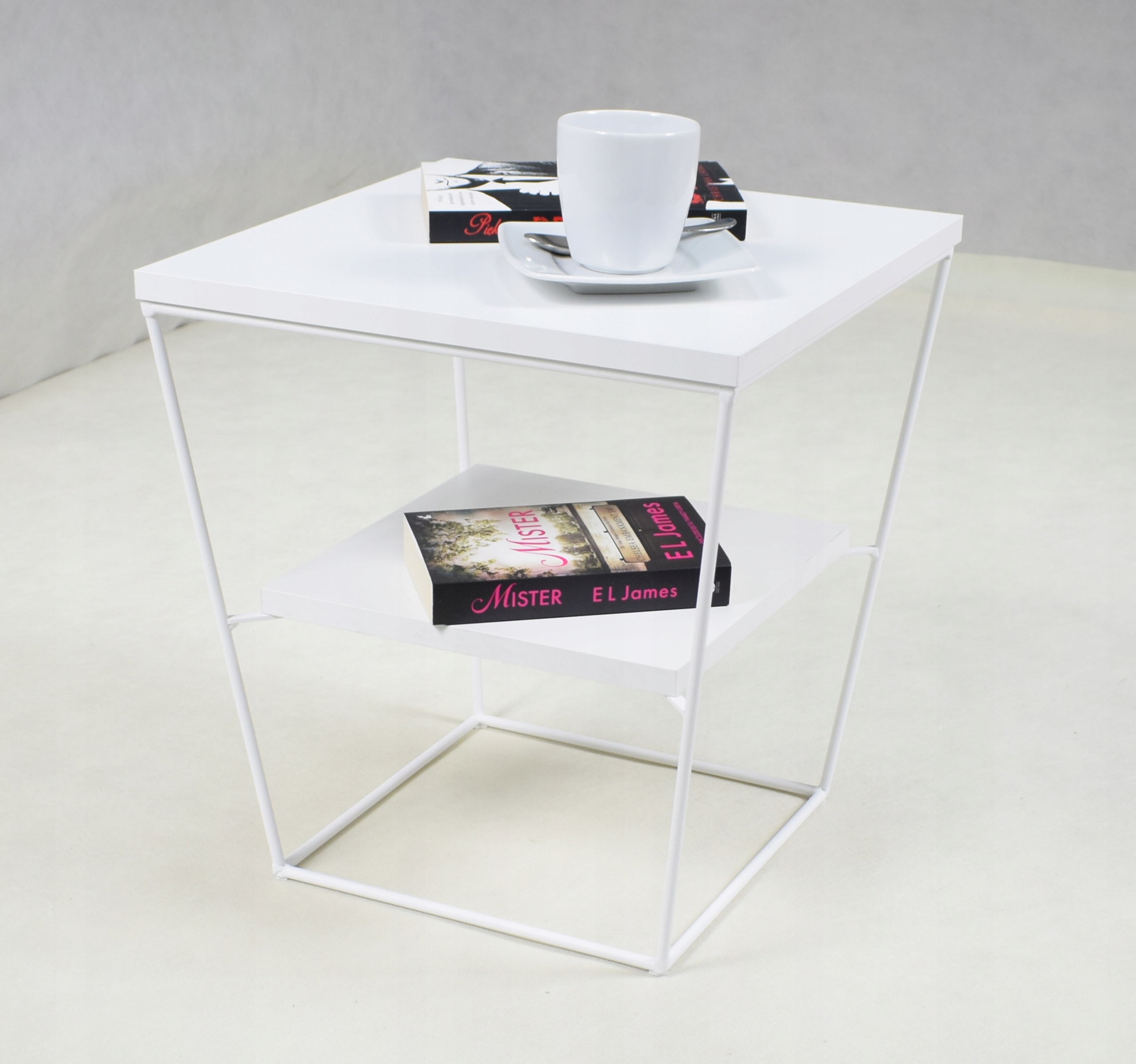 Edinstvena, praktična in elegantna, a preprosta klubska mizica. Kombinacija kovine in laminirane plošče (iverne plošče) s PVC furnirjem. Masivna, kvadratna plošča, debeline 1,8 cm. Okvir je izdelan iz močne in vzdržljive 8 mm žice. Imamo lastno delavnico za prašno lakiranje, zato se zadeve lotevamo profesionalno. Konstrukcije miz so barvane z dvema slojema: prvi fosfatni sloj razmasti, očisti in prepreči korozijo. Drugi sloj je dejanska prašno lakirana barva s fino teksturo (odporna na praske). Miza je izdelana iz najvišje kakovosti.