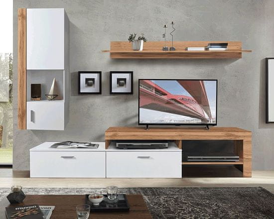Stenska stena Aluba je idealna rešitev za tiste, ki iščejo funkcionalno in estetsko privlačno pohištvo za svojo dnevno sobo. Njegov preprost, a sodoben dizajn se prilega vsaki notranjosti in bo ustvaril prijetno vzdušje v vaši dnevni sobi.