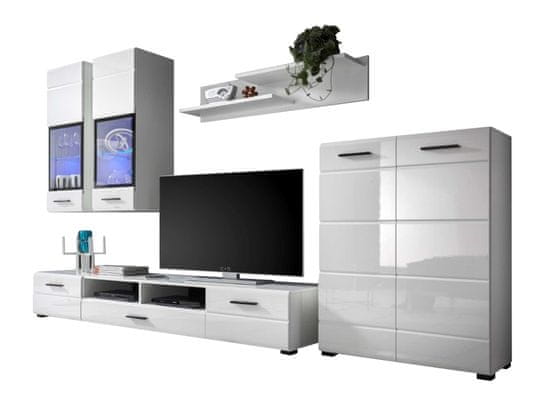 Živa stena Arctic v beli barvi visoki sijaj je sodobna rešitev za vaš interier, ki združuje eleganco in funkcionalnost. Ta eleganten komplet podjetja KONDELA je zasnovan tako, da v vašo dnevno sobo vnese svetlobo in čistočo.