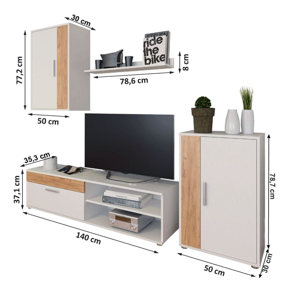 Živa stena Kevin v elegantnem belem in obrtniškem hrastovem dizajnu je idealna rešitev za sodobno notranjost. Ta eleganten komplet znamke KONDELA ne ponuja le estetskega videza, temveč tudi praktičnost in funkcionalnost, ki ju bo cenilo vsako gospodinjstvo.