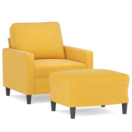 Vidaxl Fotelj s stolčkom za noge svetlo rumen 60 cm žamet