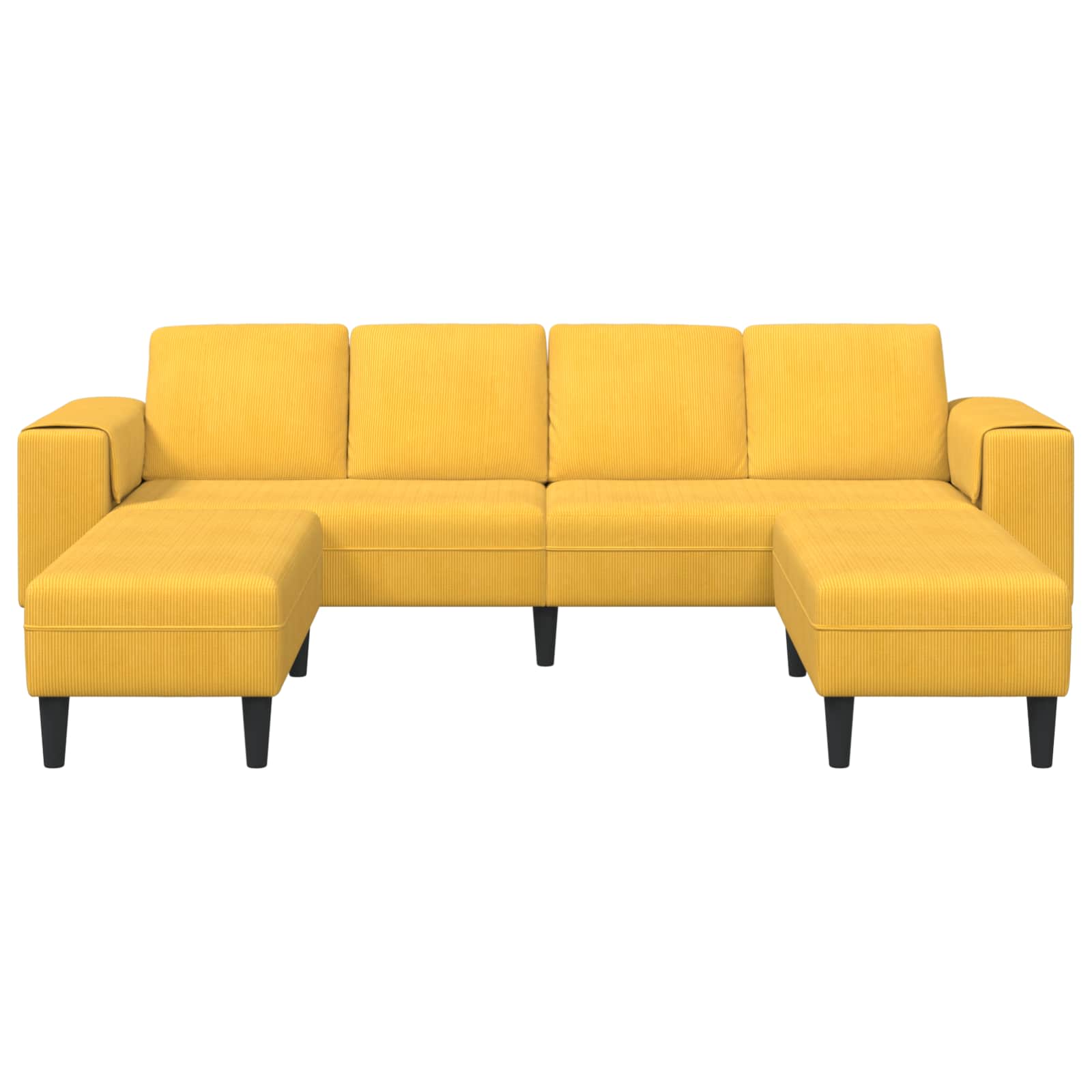 • Materiali: Sedežna garnitura je narejena iz luksuznega in trpežnega korduroja, ki nudi zračno udobje in dolgotrajno trpežnost. Ta tkanina je odporna in omogoča, da uživate pri sedenju brez skrbi, saj še dolgo ostaja del vaše dnevne sobe.