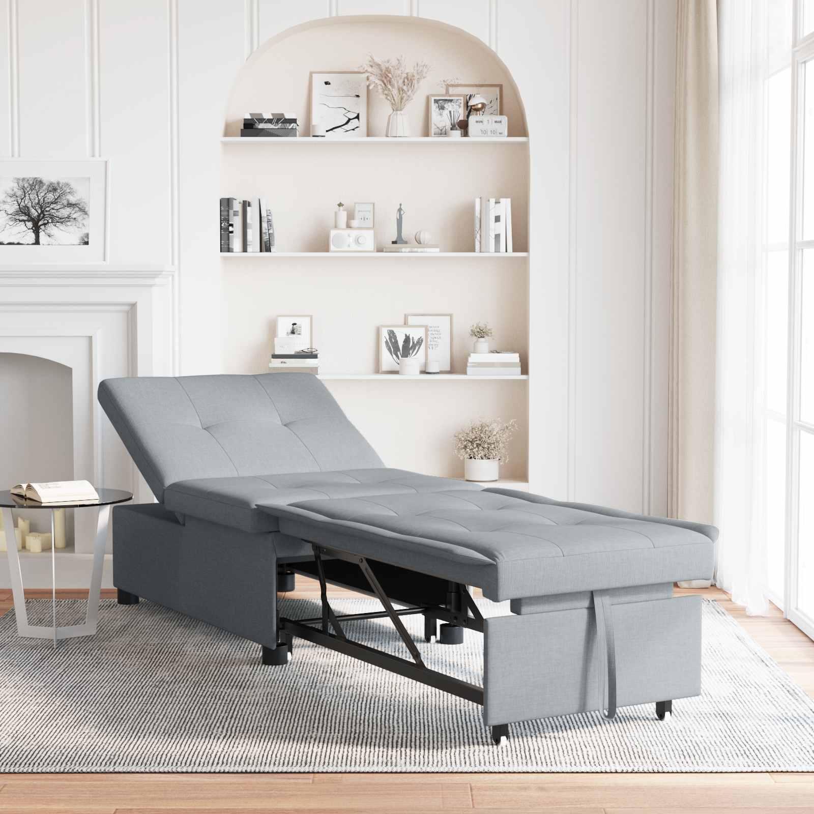 Ta moderni raztegljiv kavč je elegantna rešitev, ki maksimira prostor in ponuja udobje. Odličen za mestno življenje, se brez napora spremeni iz stilskega kavča v sproščujočo posteljo ali naslonjalo, z enostavnim mehanizmom za razteg. Njegov minimalističen oblikovanje se brez težav prilega dnevnim sobam in prostorskim za goste, združuje prakticnost s sodobno estetiko.