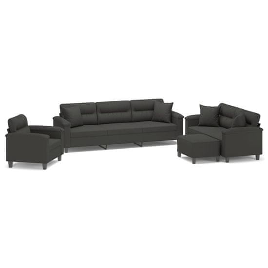 Vidaxl Sedežna garnitura 4-delna z blazinami temno siva mikrovlakna